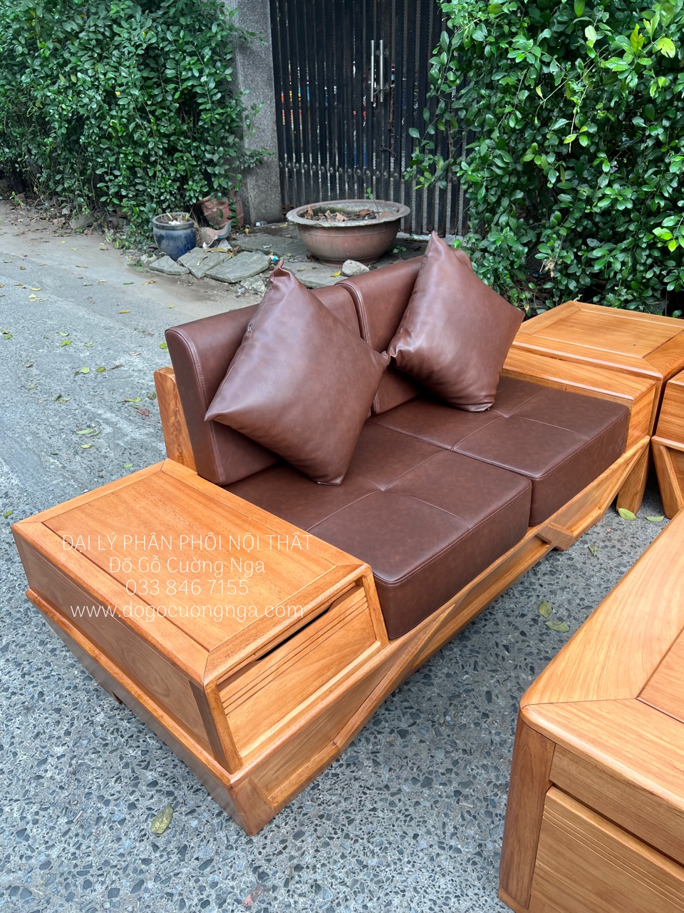 Ghế sofa gỗ gõ đỏ 2 văng cao cấp