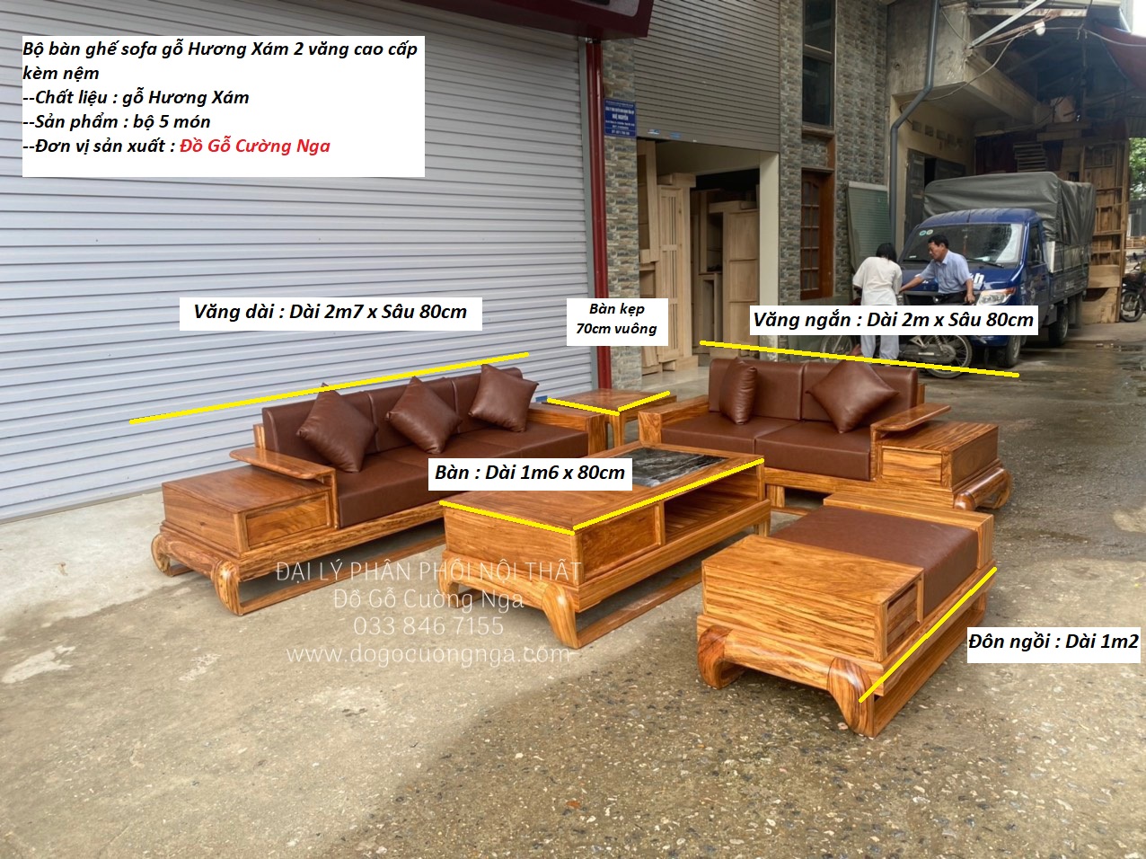 Kích Thước Bộ Sofa Gỗ Hương Xám