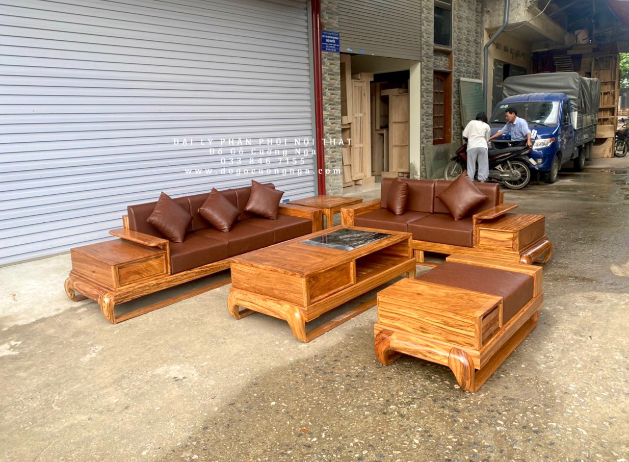 Bàn Ghế Sofa 2 Văng Gỗ Hương Xám Hiện Đại