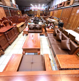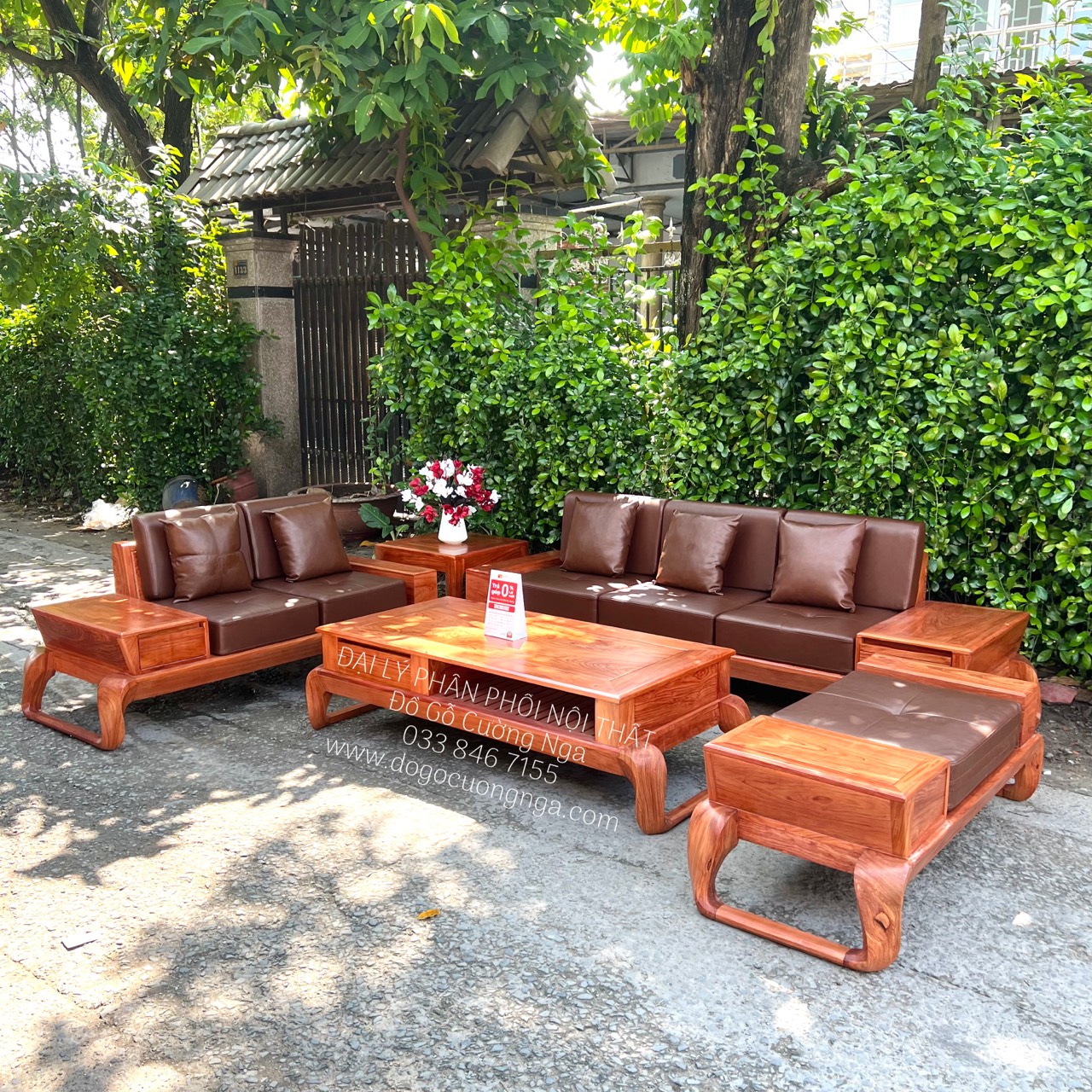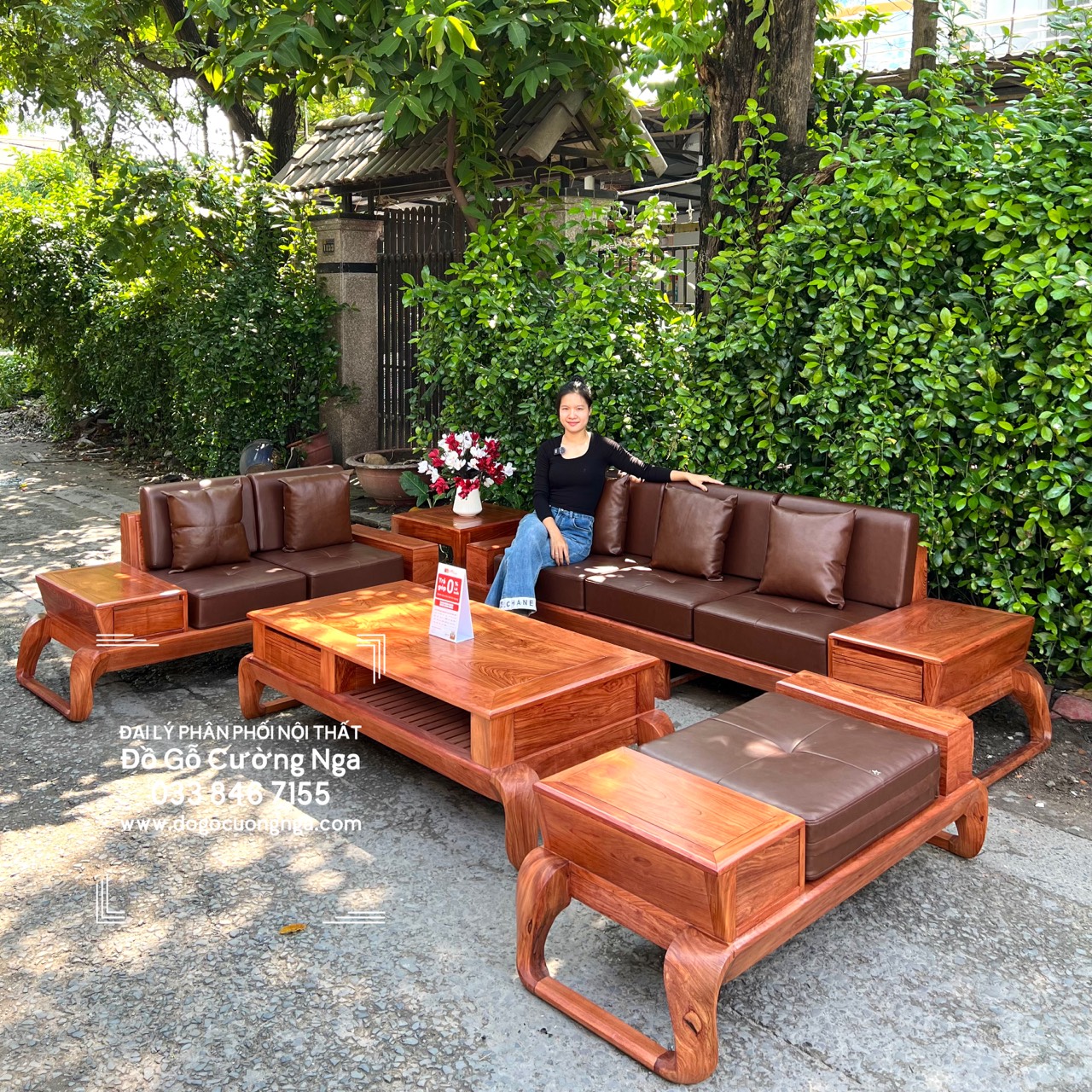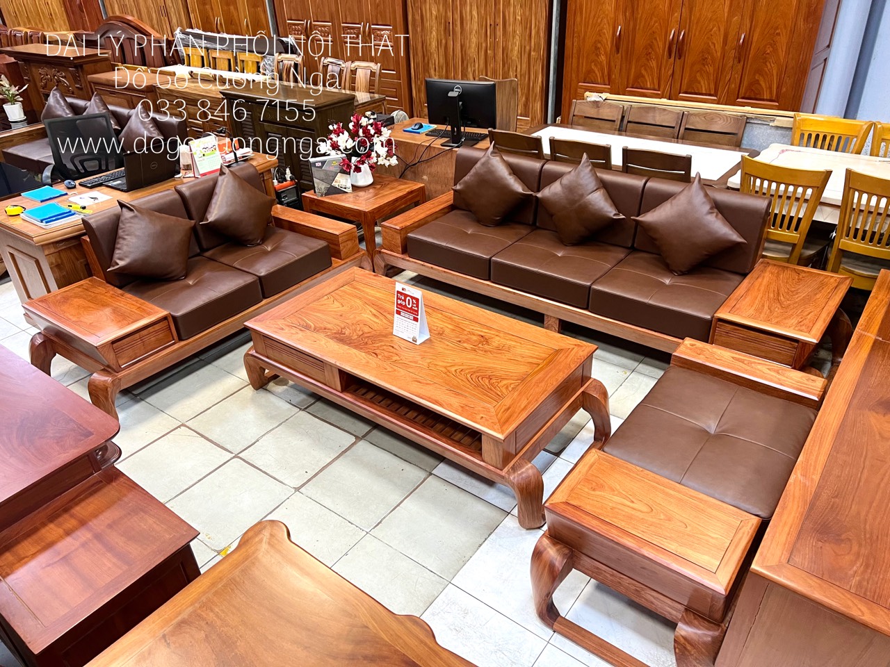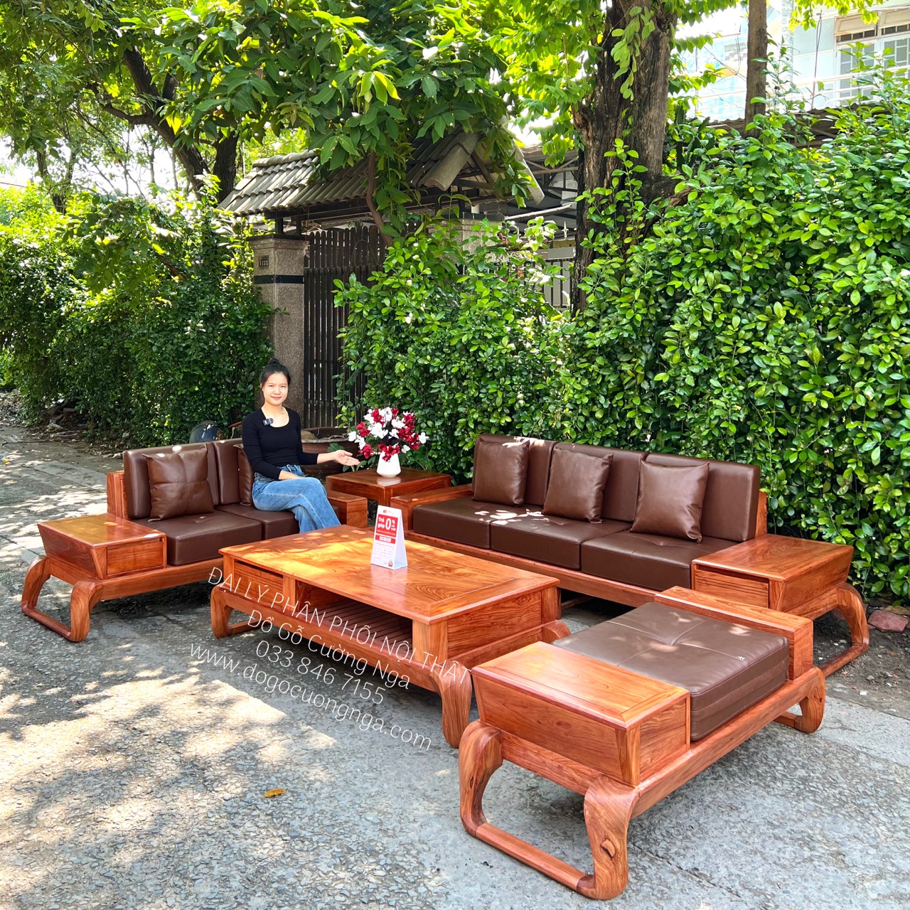 Sofa Gỗ Hương Đá Cao Cấp 2 Văng Choãi Kiểu Chữ U Sang Trọng
