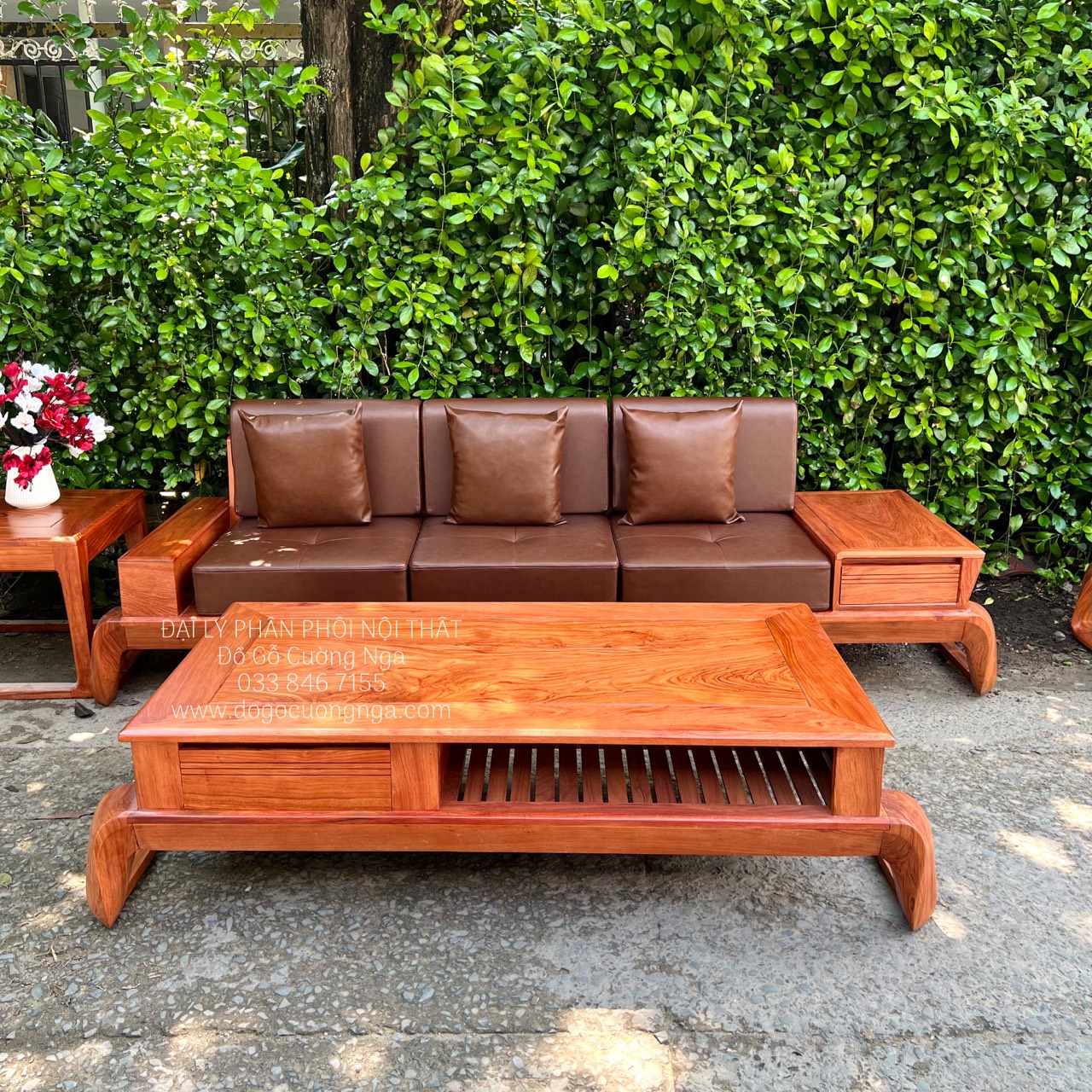 Ghế sofa gỗ hương đá 2 văng choãi cao cấp