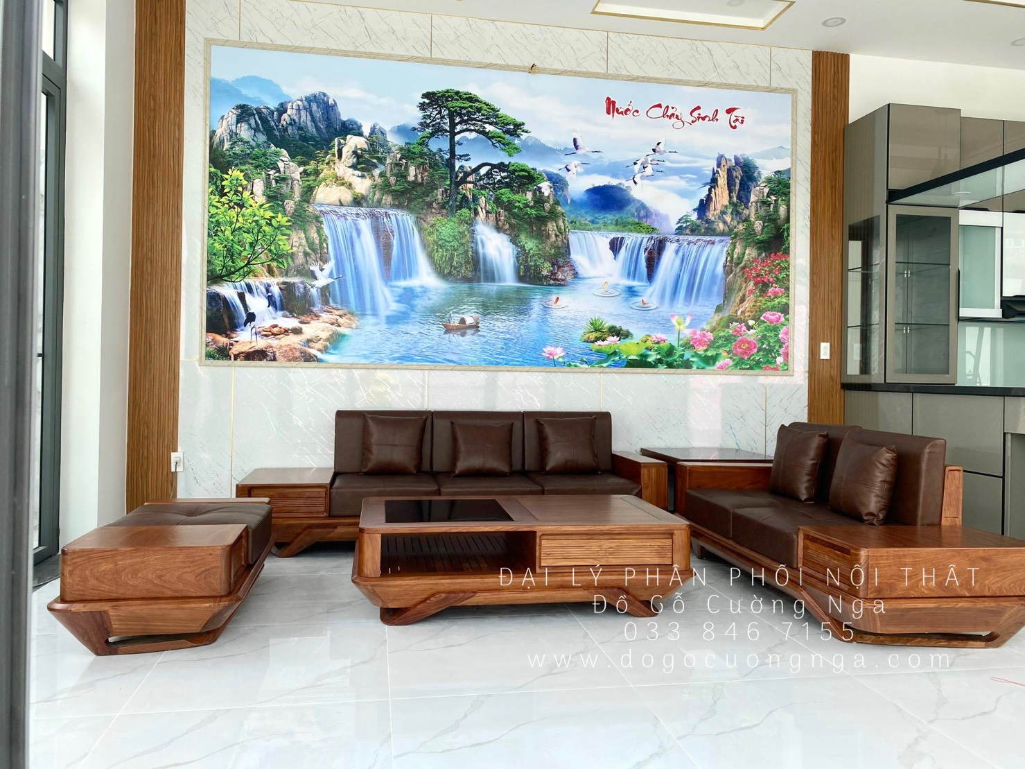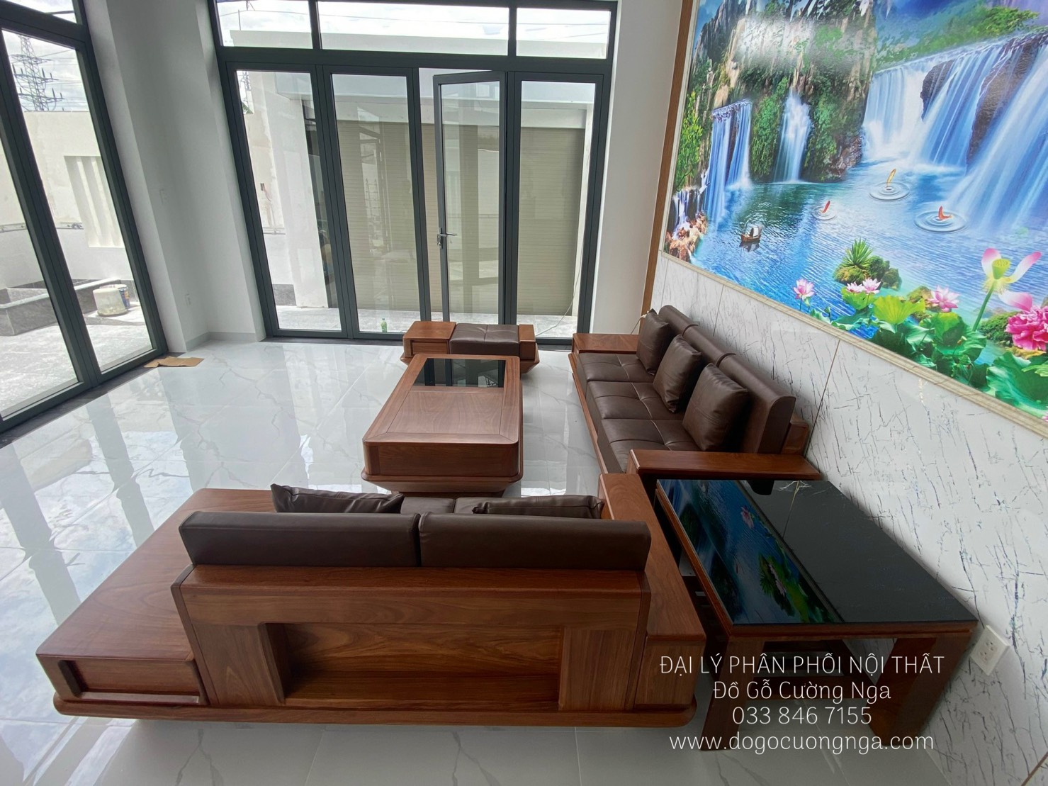 Ghế sofa 2 văng cao cấp kèn nệm da