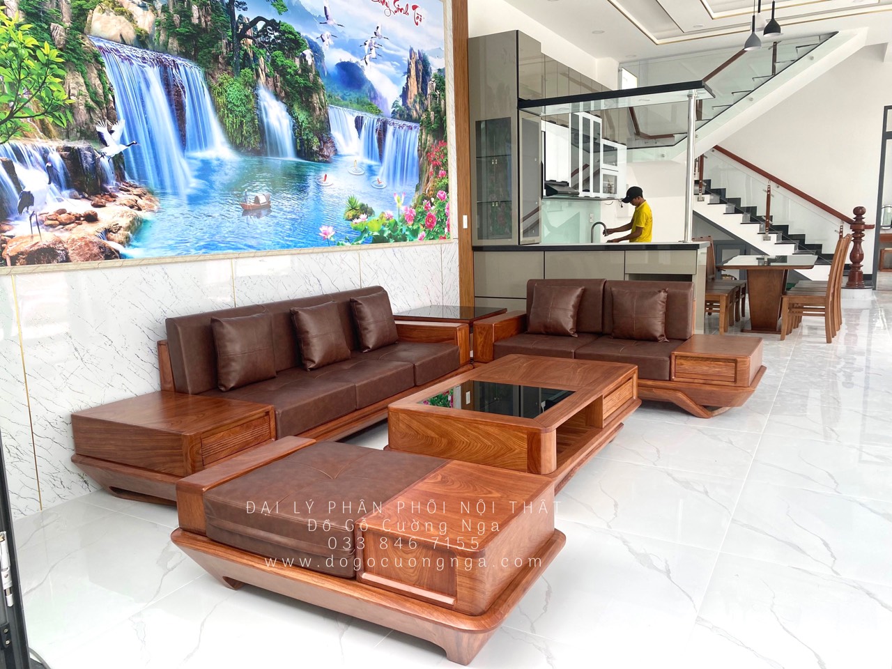 Ghế sofa gỗ hương vàng chân thuyền sang trọng
