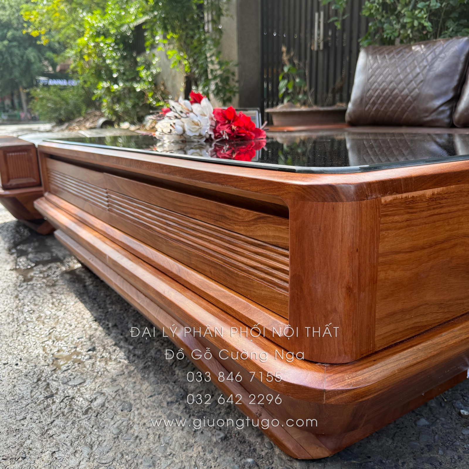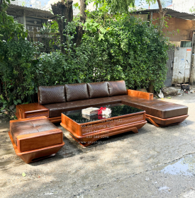 Sofa Gỗ Hương Vàng Góc L Chân Thuyền 3m25 x 2m15 Cao Cấp
