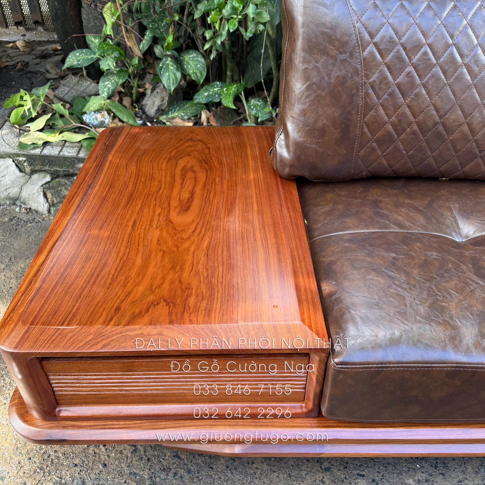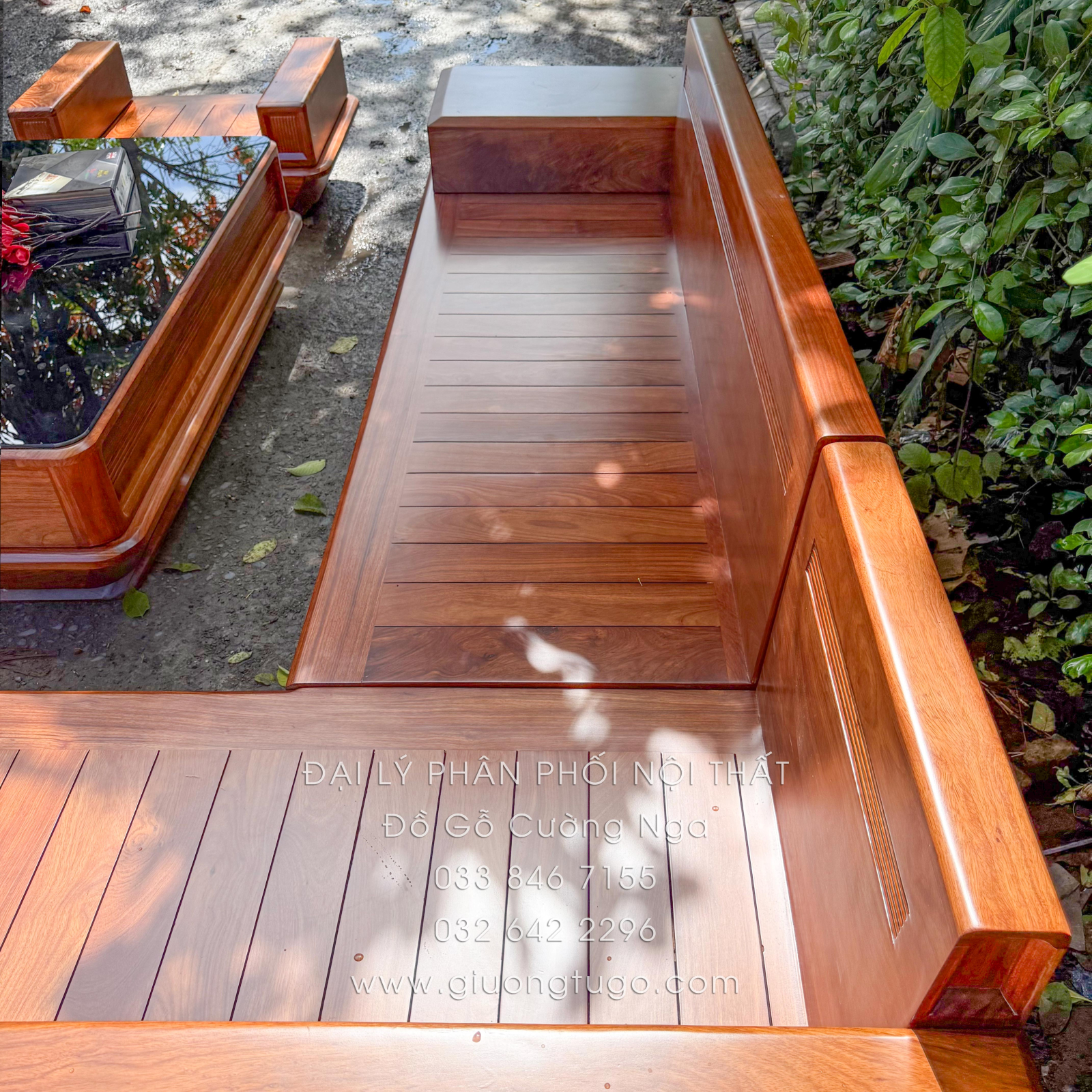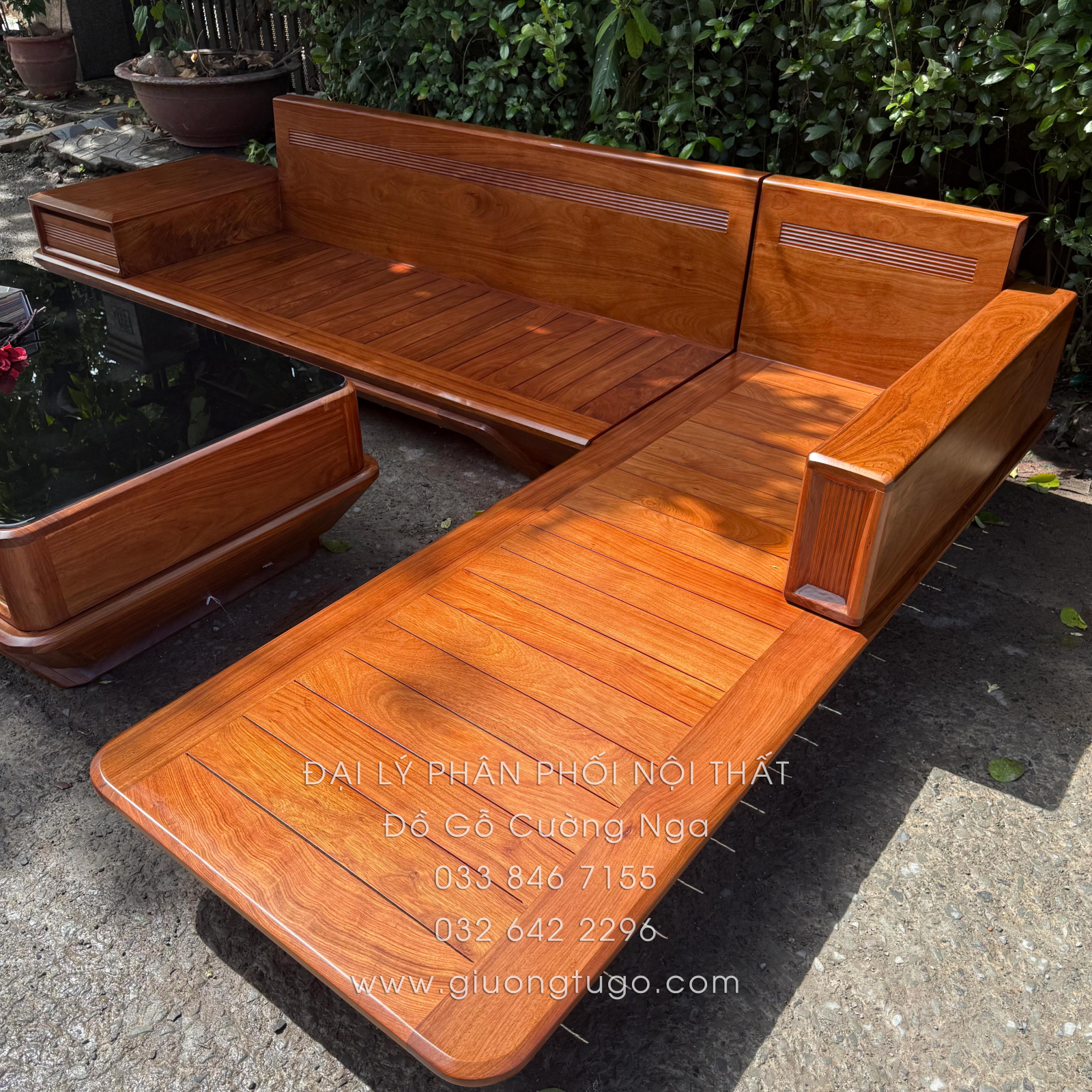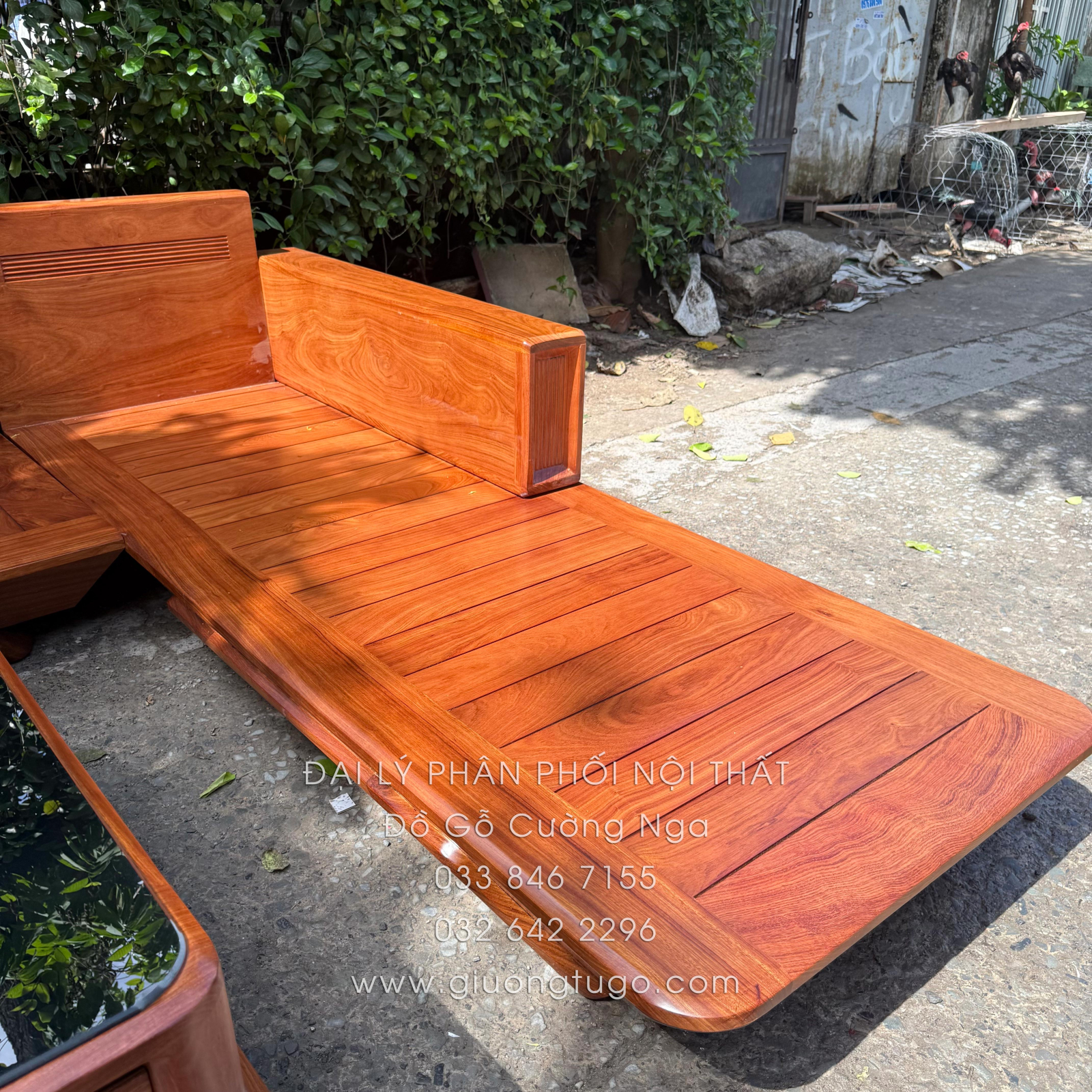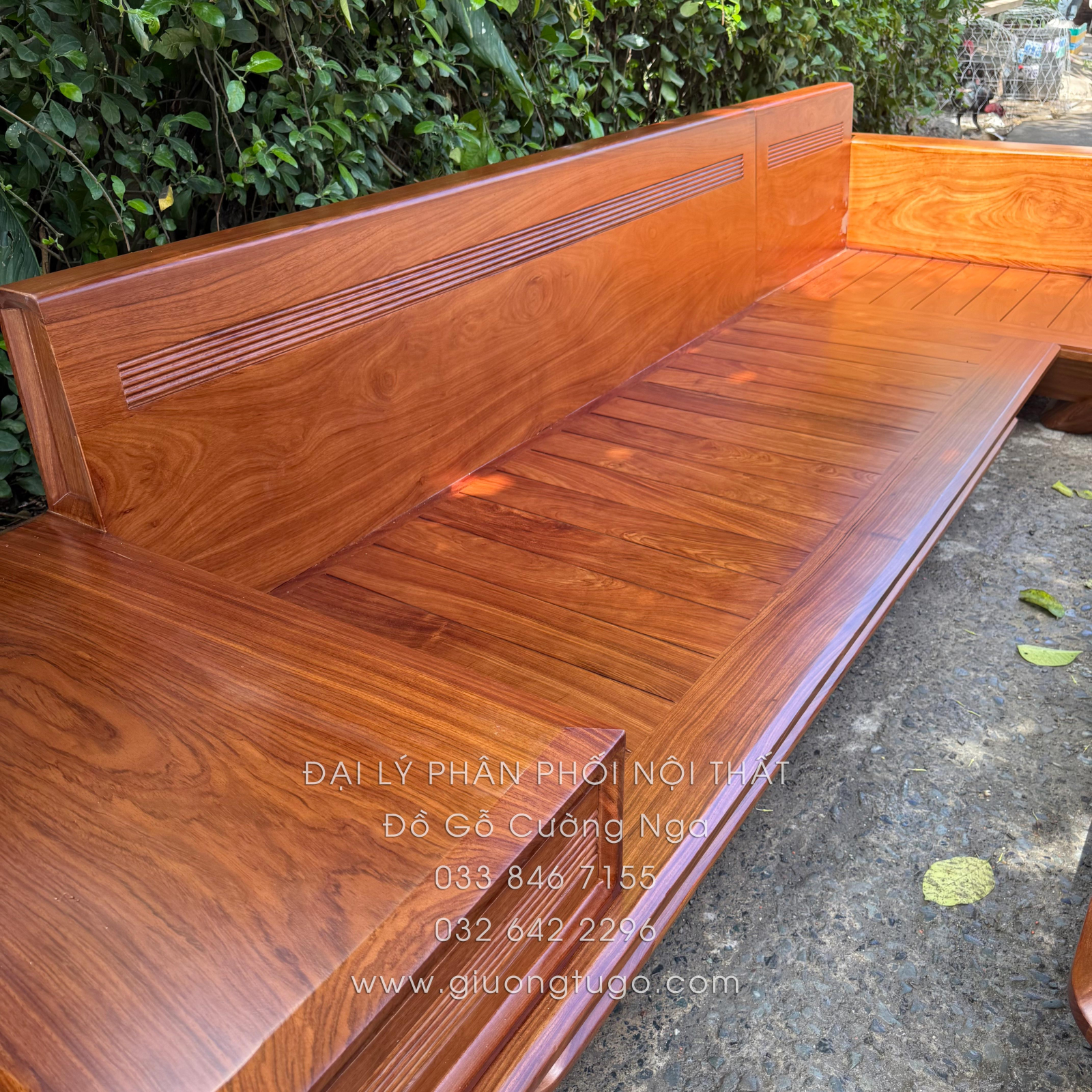 Thông tin chi tiết Sofa Gỗ Hương Vàng Góc L Chân Thuyền 3m25 x 2m15 Cao Cấp