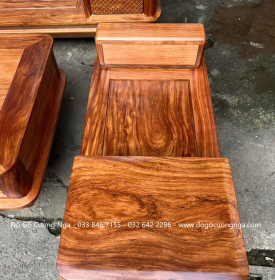 Chi tiết ghế sofa gỗ hương xám kèm nệm