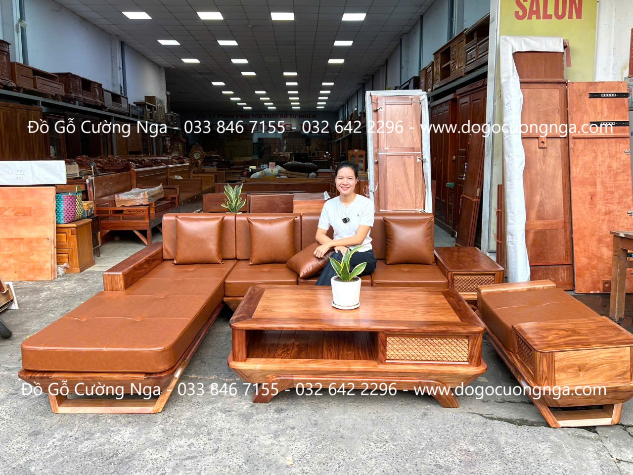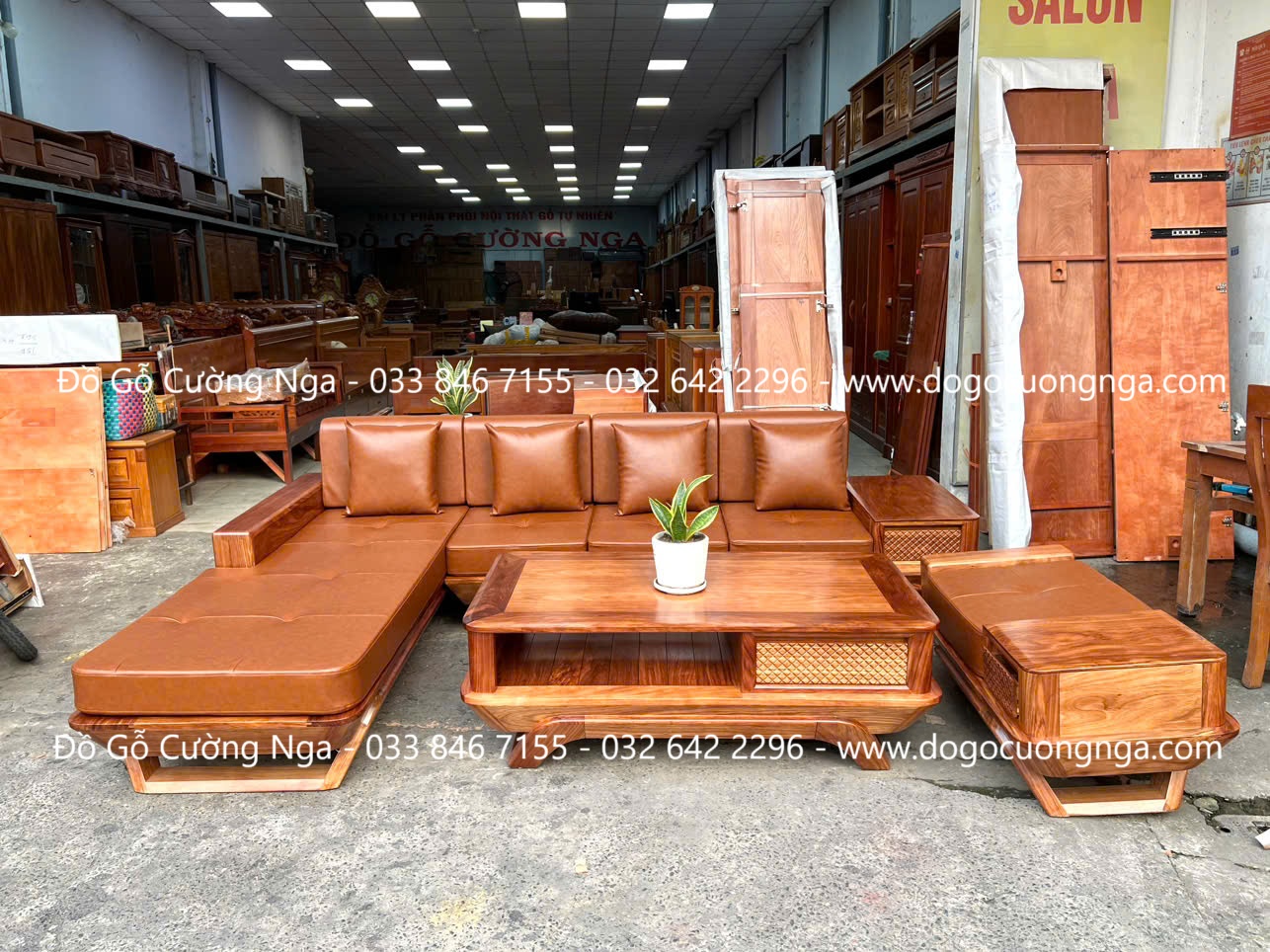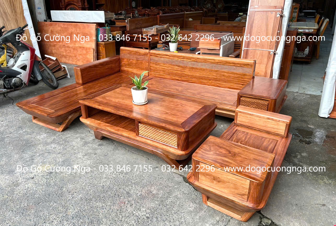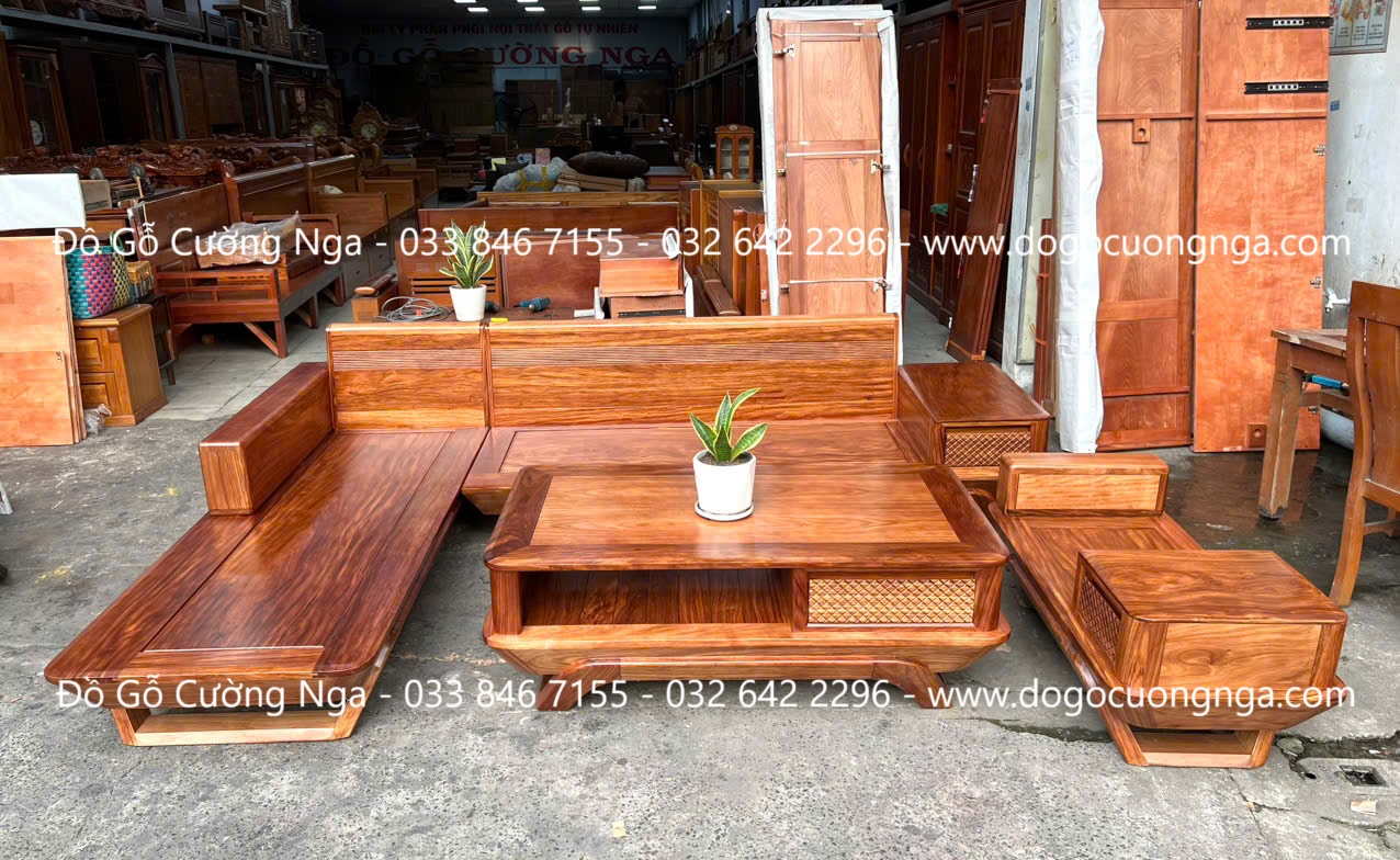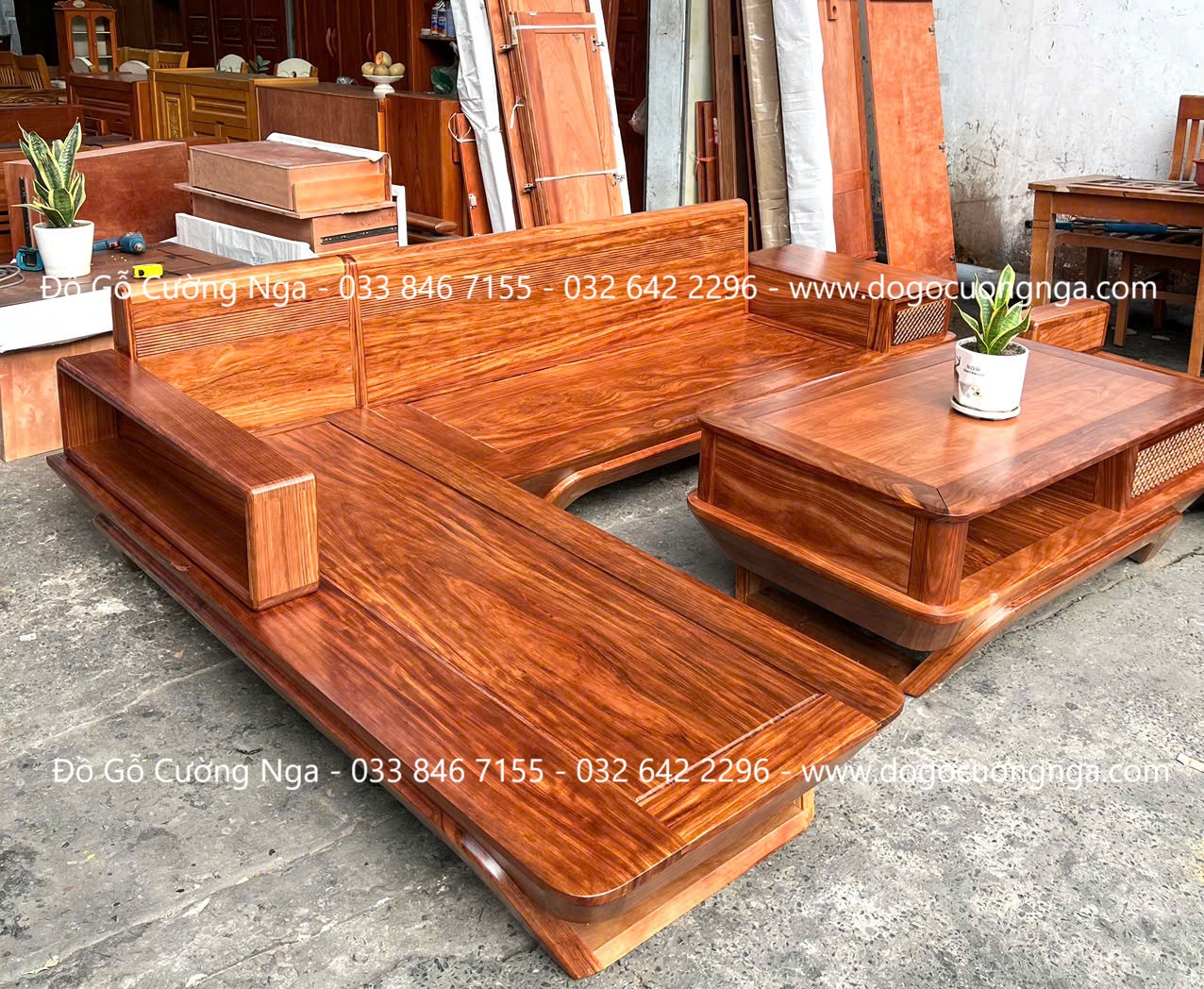 Giới Thiệu Về Bộ Ghế Sofa Gỗ Hương Xám Góc L Chân Thuyền Cho Diện Tích 20m2 - 25m2