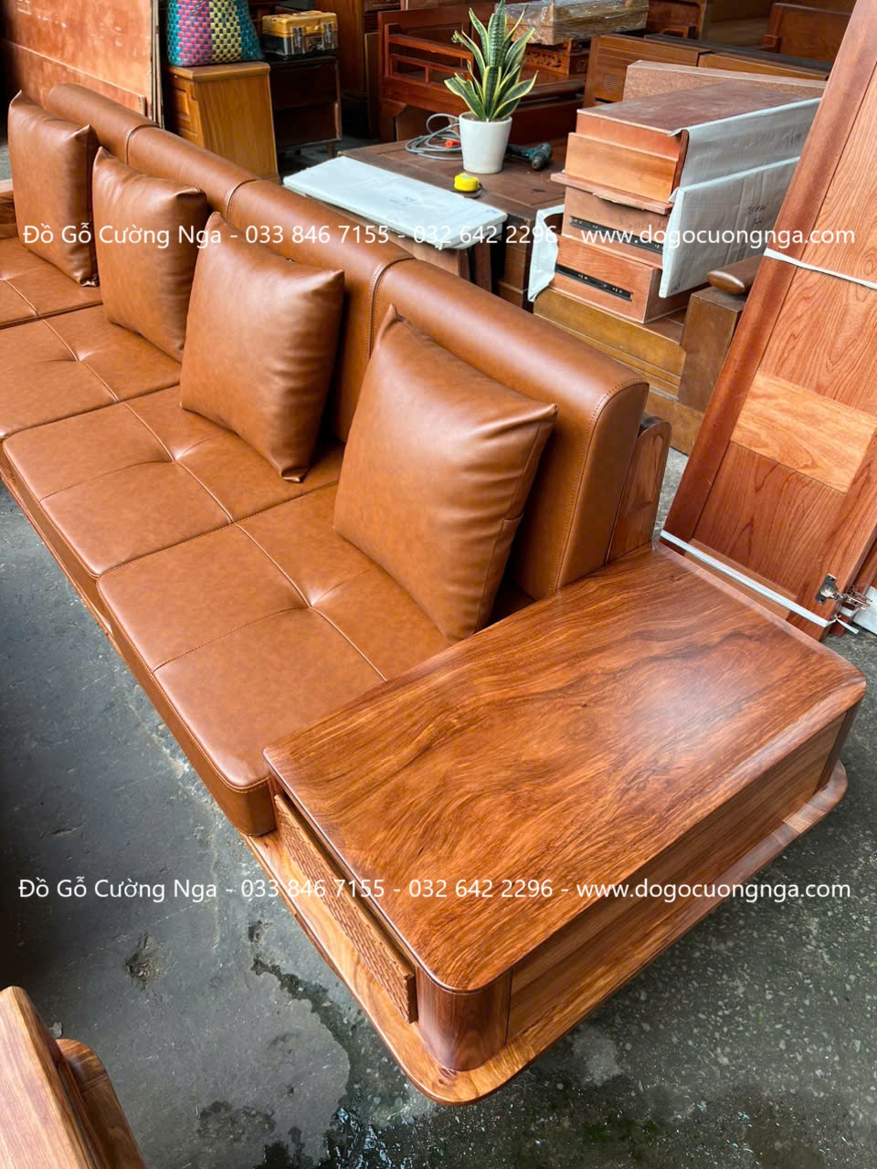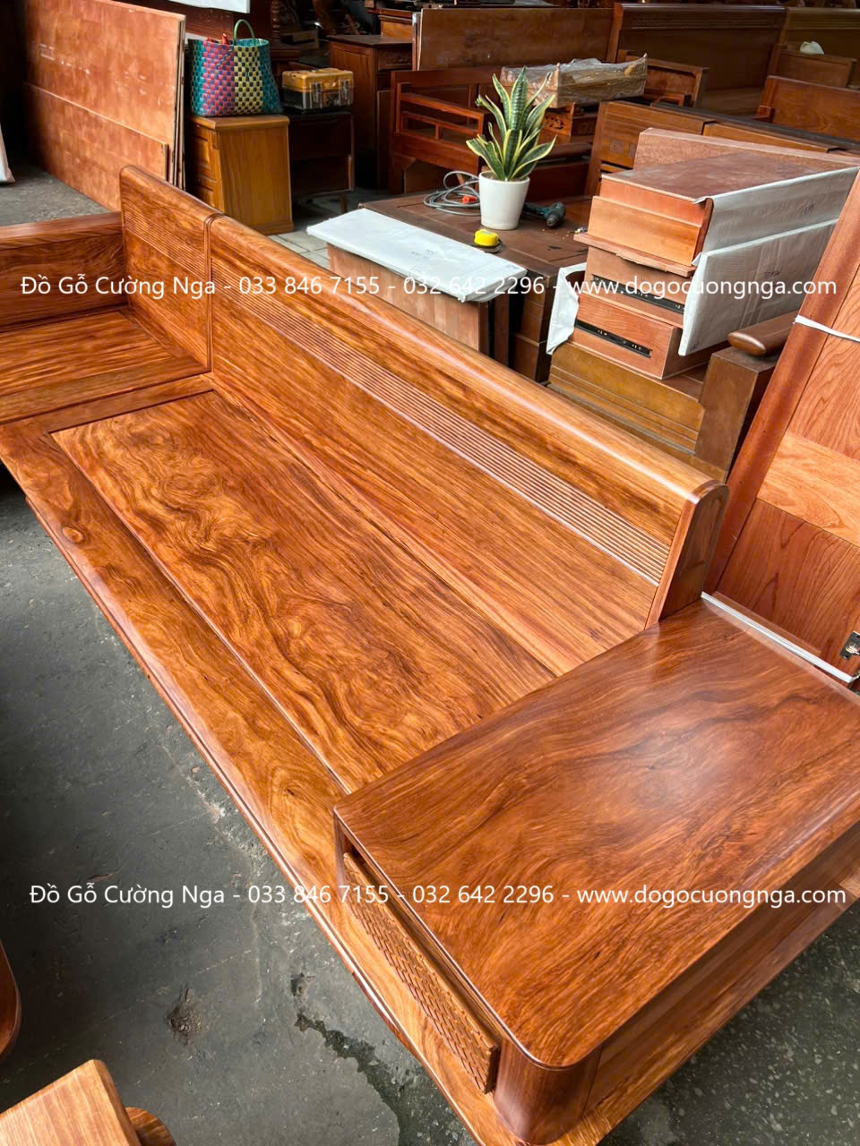 Sofa gỗ hương xám hiện đại chân thuyền kích thước lớn