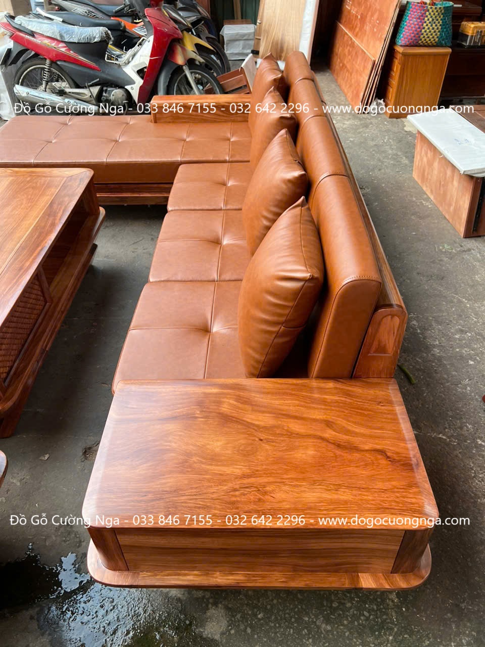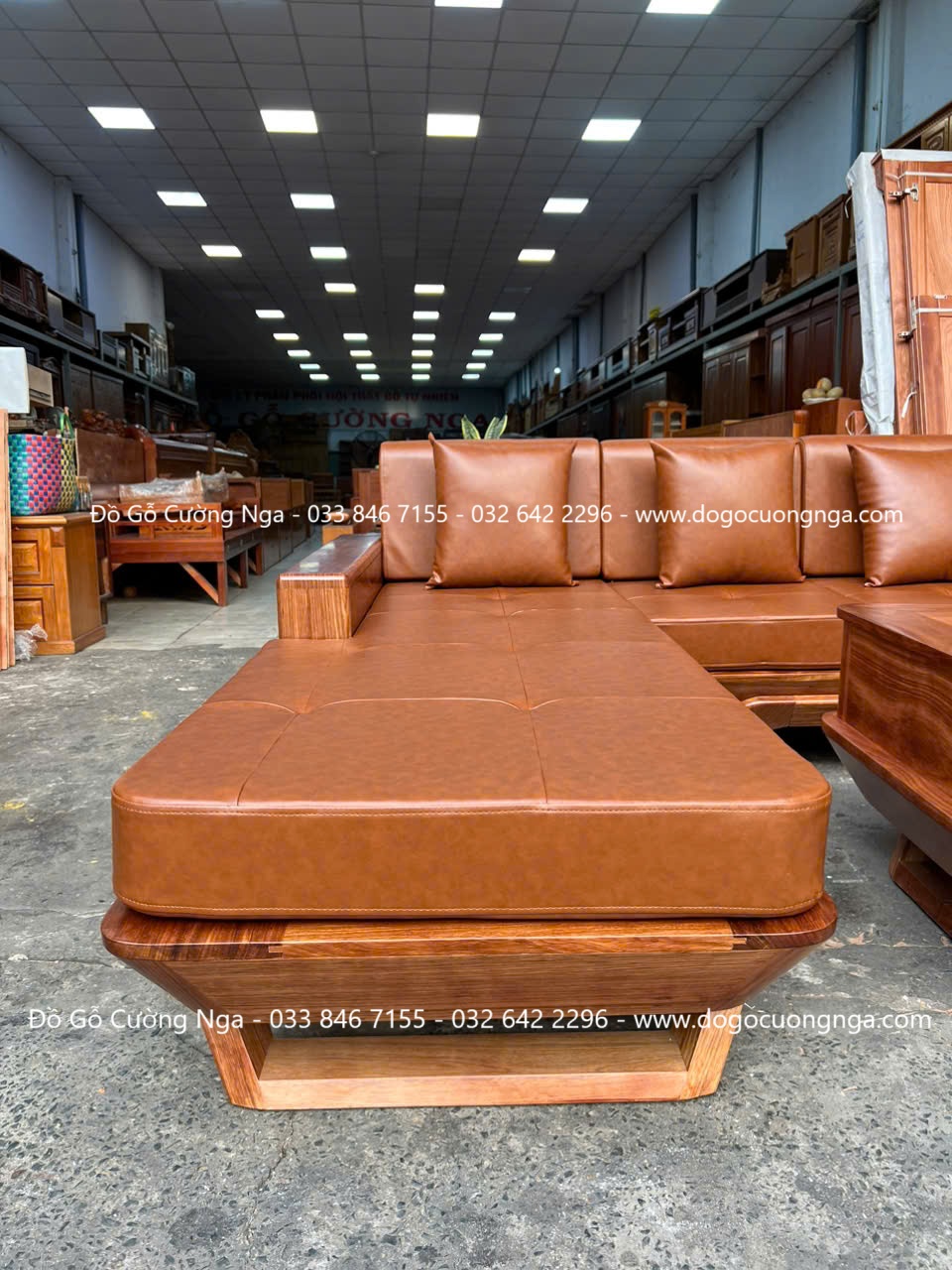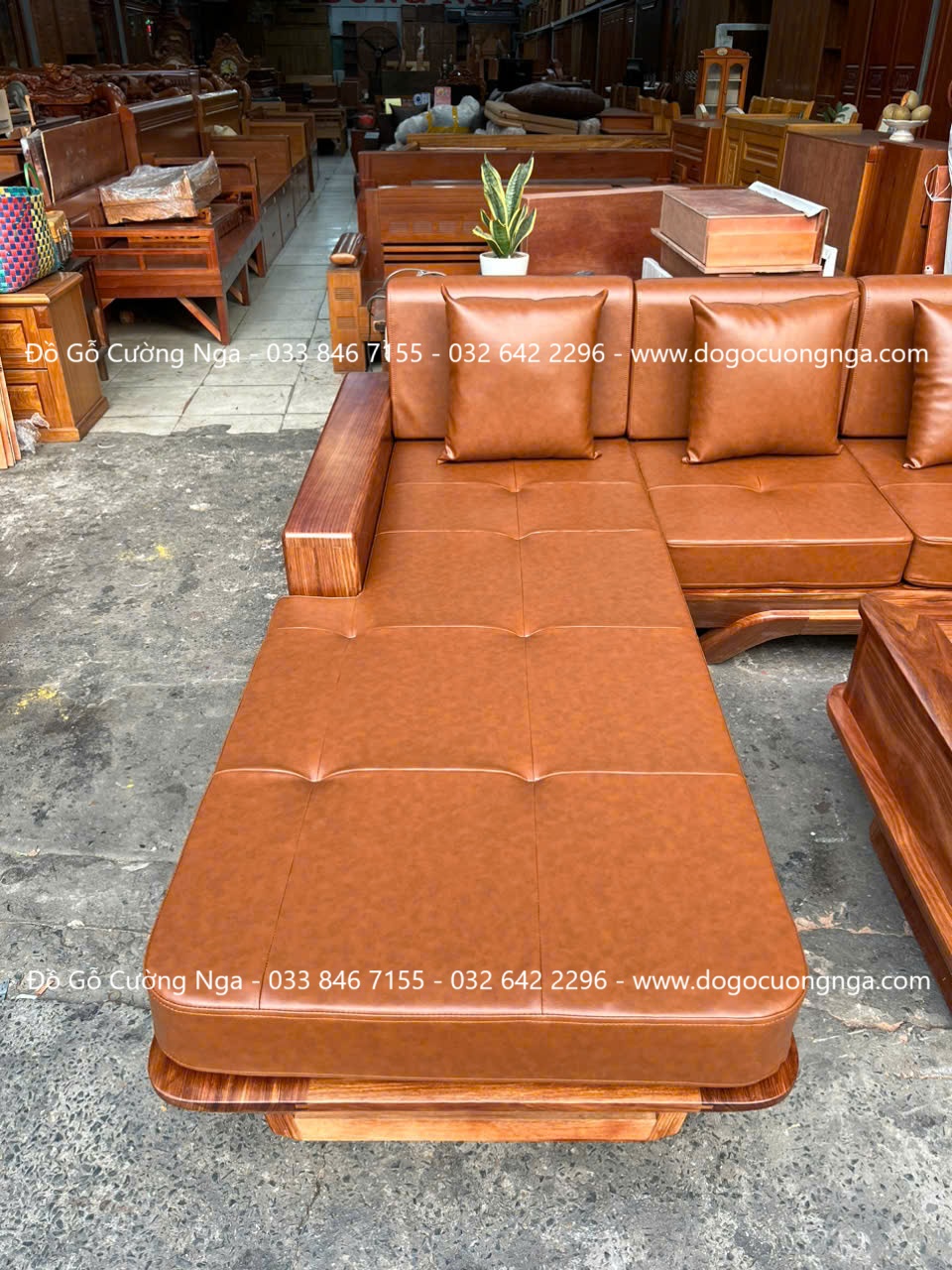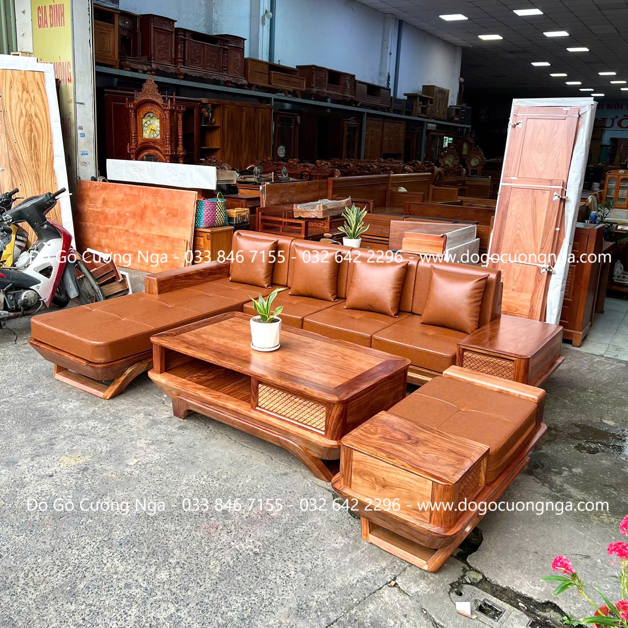 Sofa gỗ hương xám chân thuyền góc L hiện đại 2m85 x 1m95