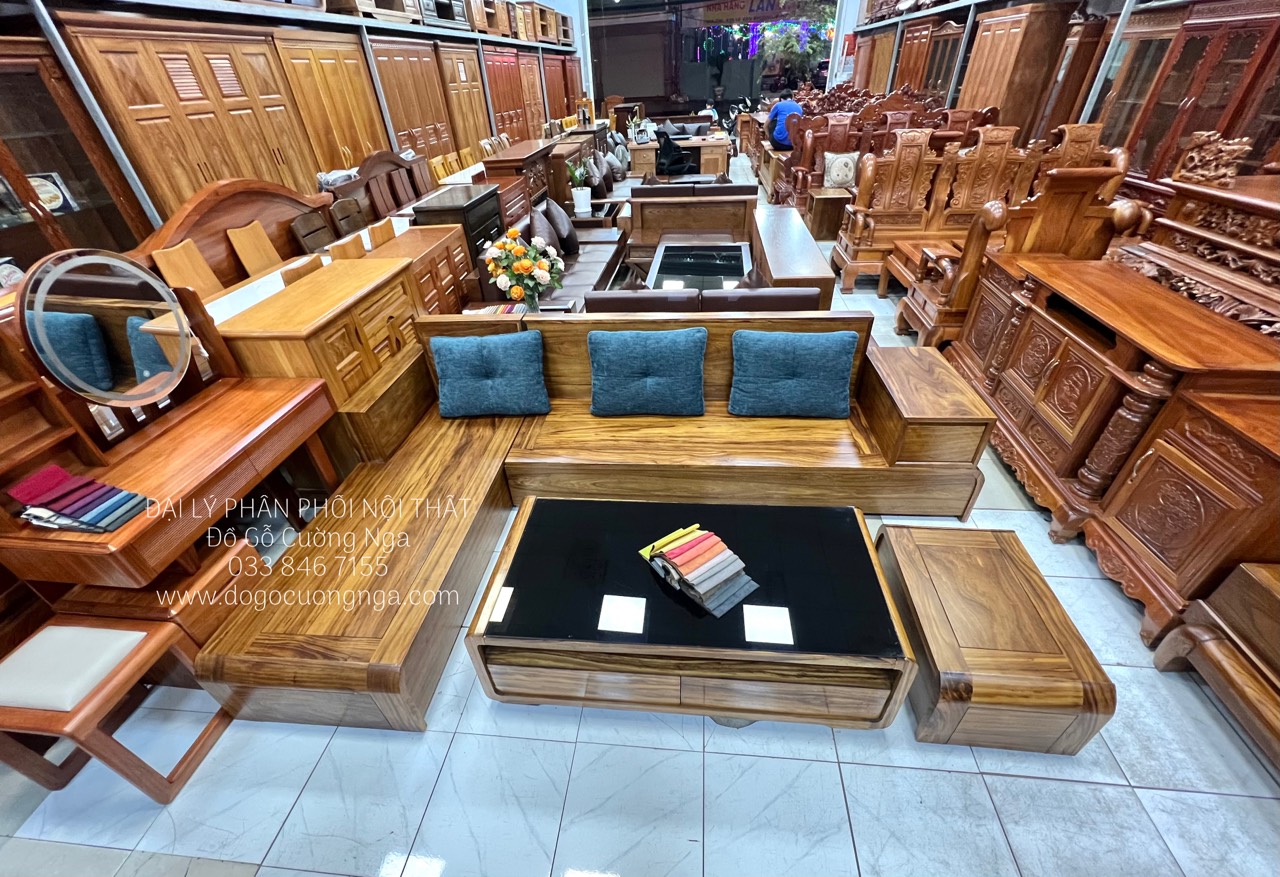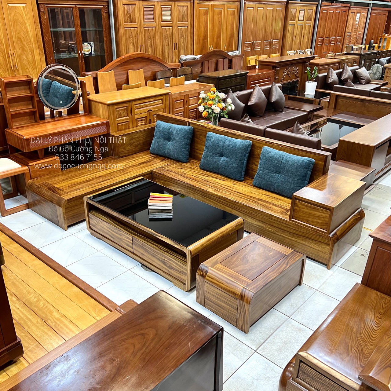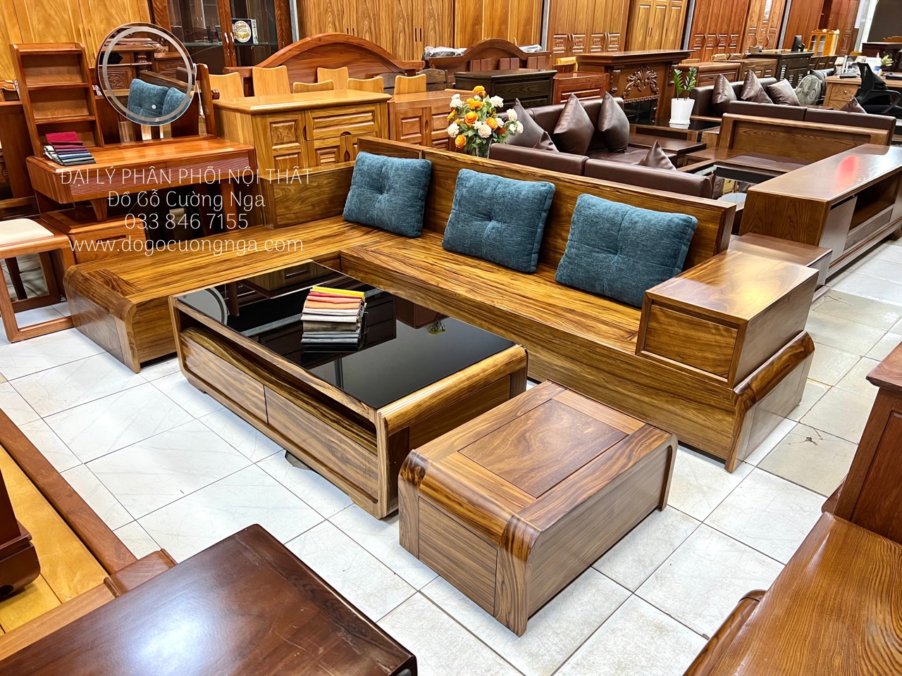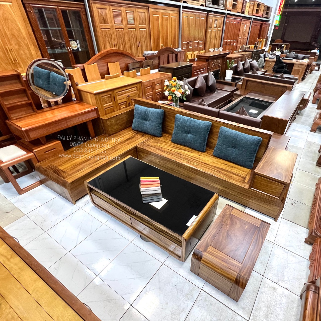 Giuongtugo.com xin giới thiệu đến bạn mẫu bàn ghế sofa gỗ hương xám được thiết kế theo phong cách hiện đại với kiểu dáng chữ L tiện dụng.