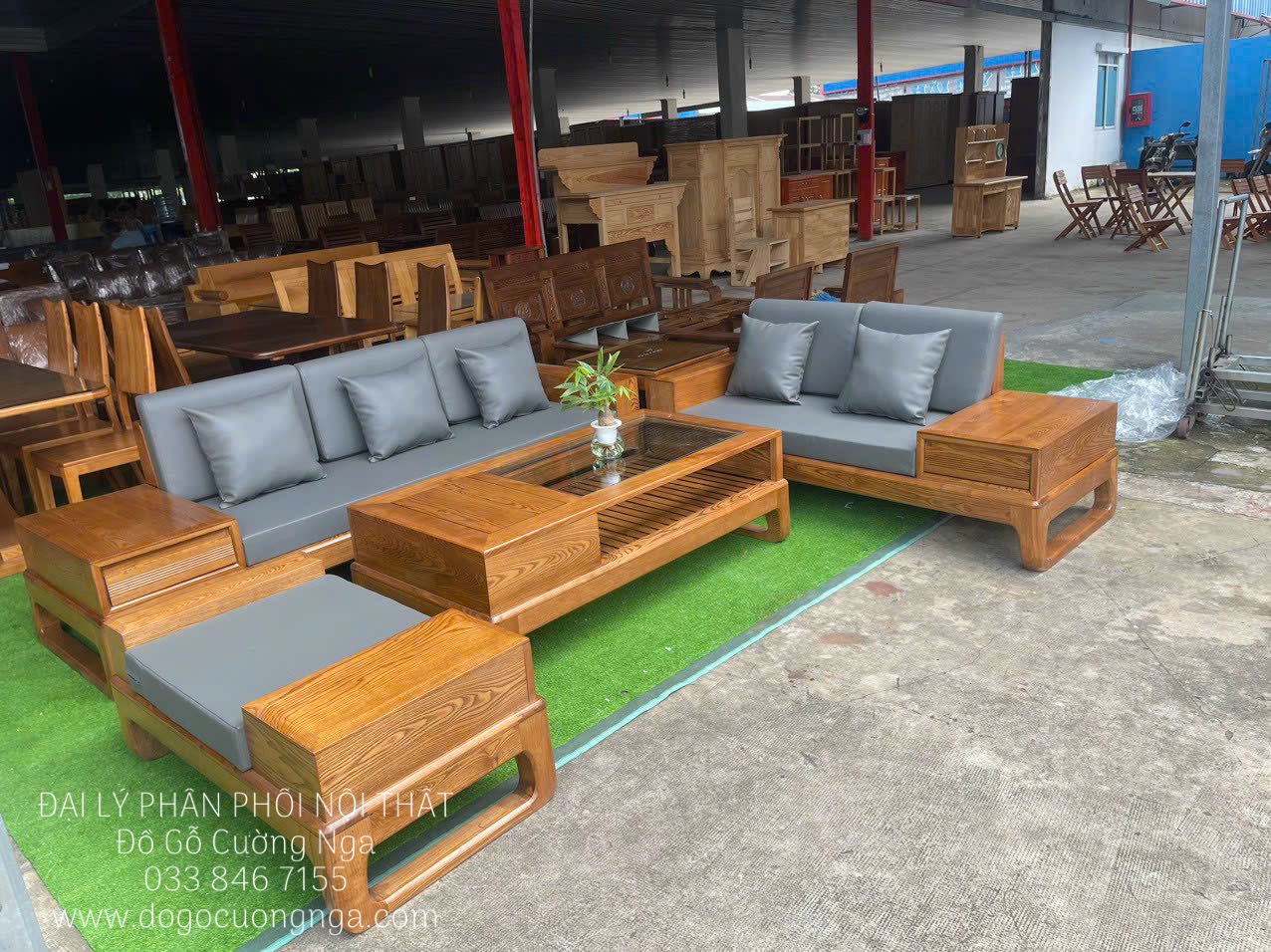 Sofa Gỗ Sồi Nga Lau Màu 2 Văng Kèm Nệm Giá Rẻ