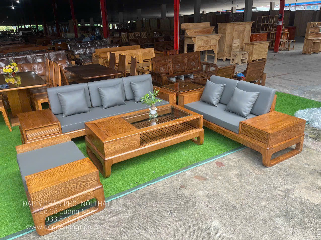 Thông Tin Sofa Gỗ Sồi 2 Văng Choãi Nệm Hiện Đại