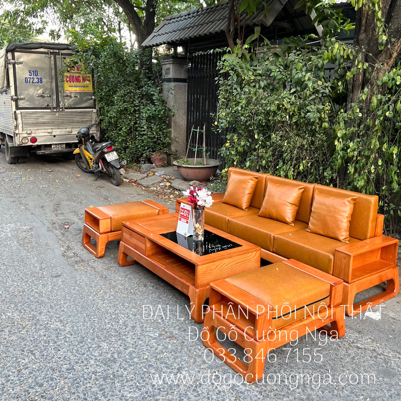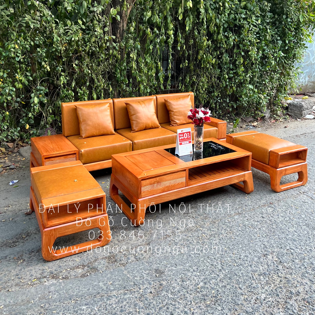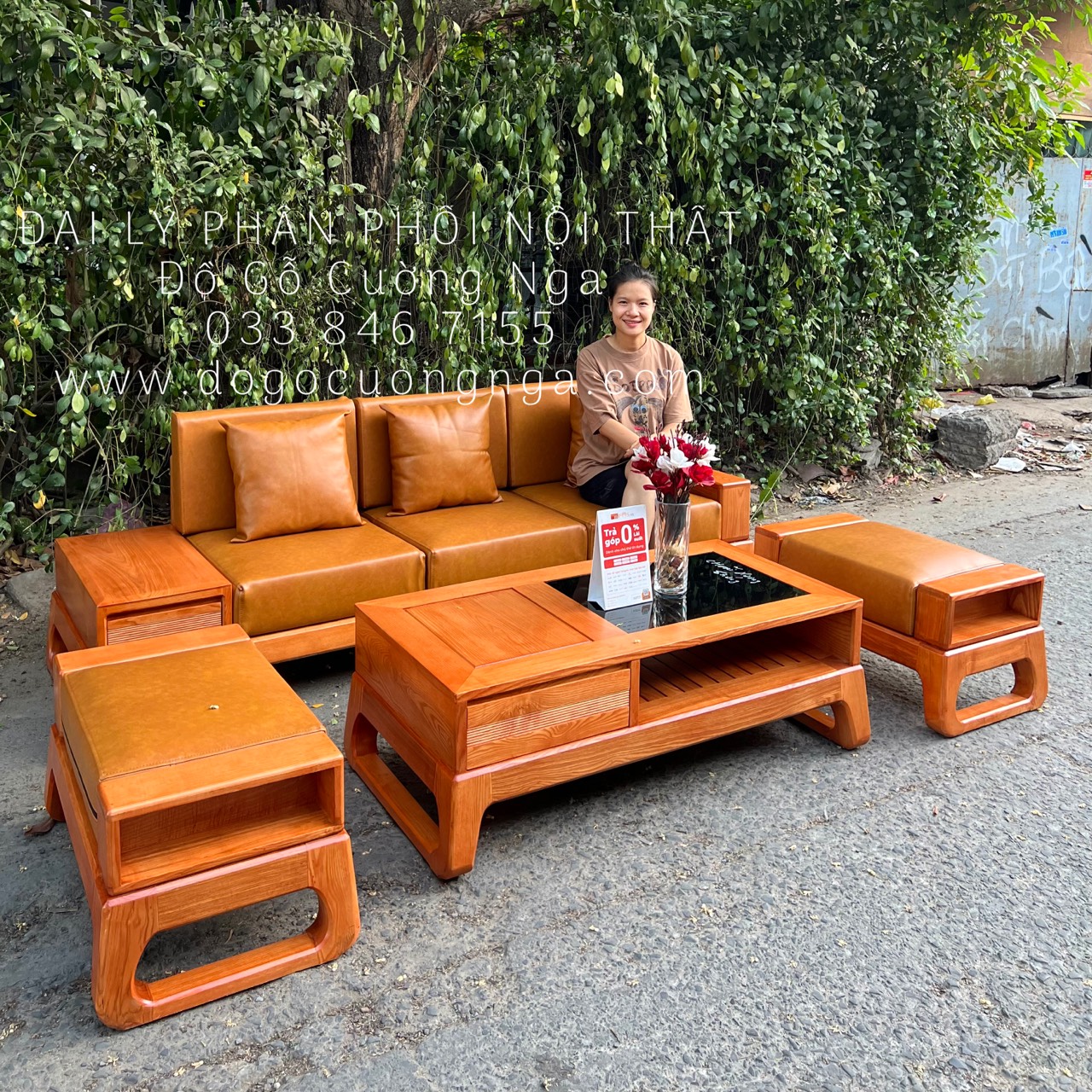 Kích thước ghế sofa gỗ sồi 1 văng 4 món đẹp