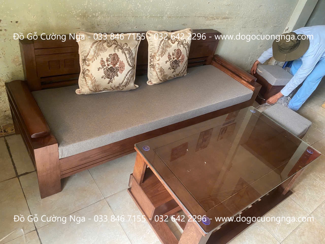 Chi tiết ghế sofa gỗ sồi nga văng chung cư