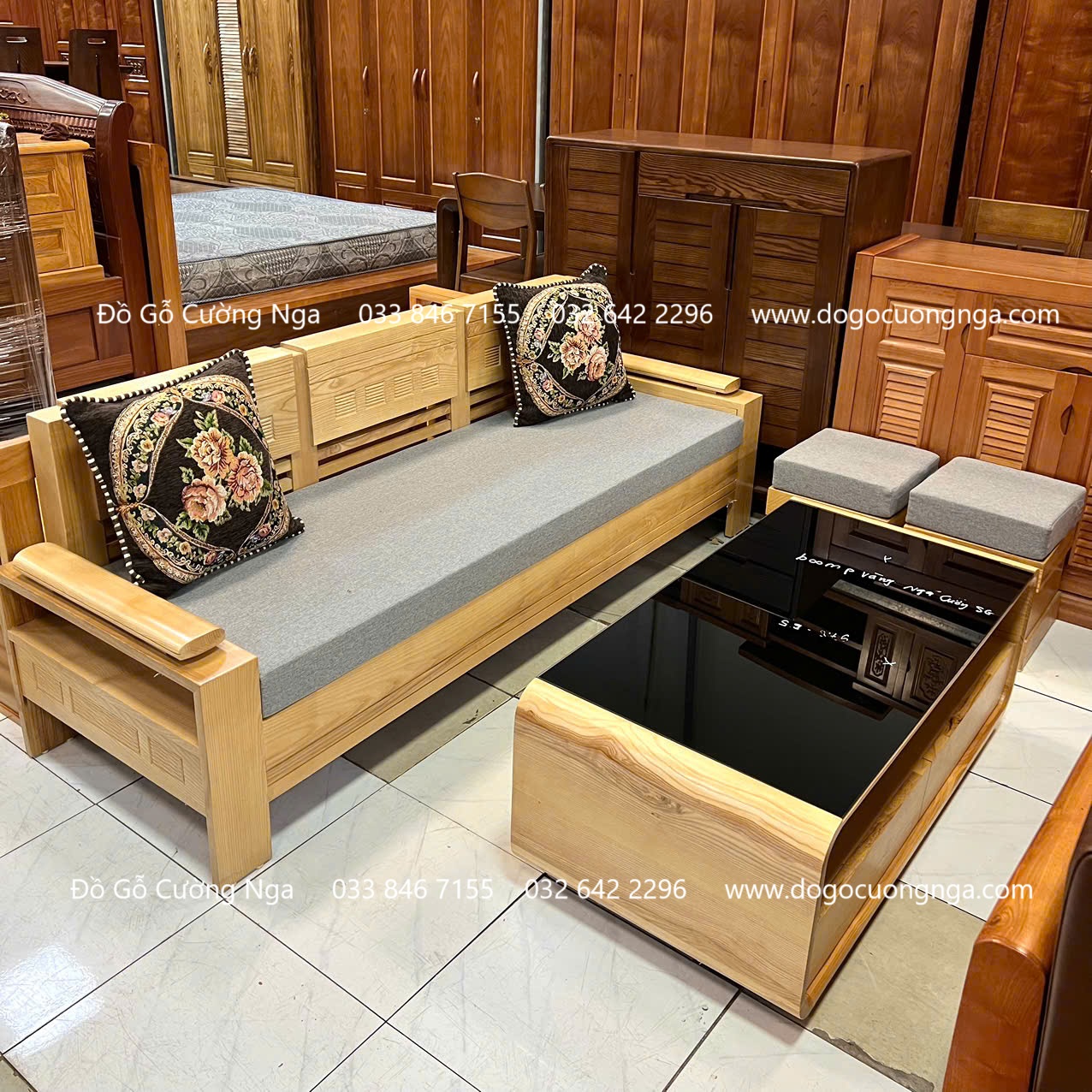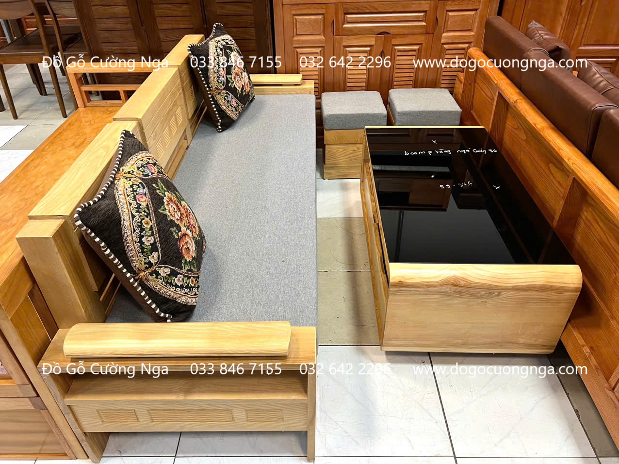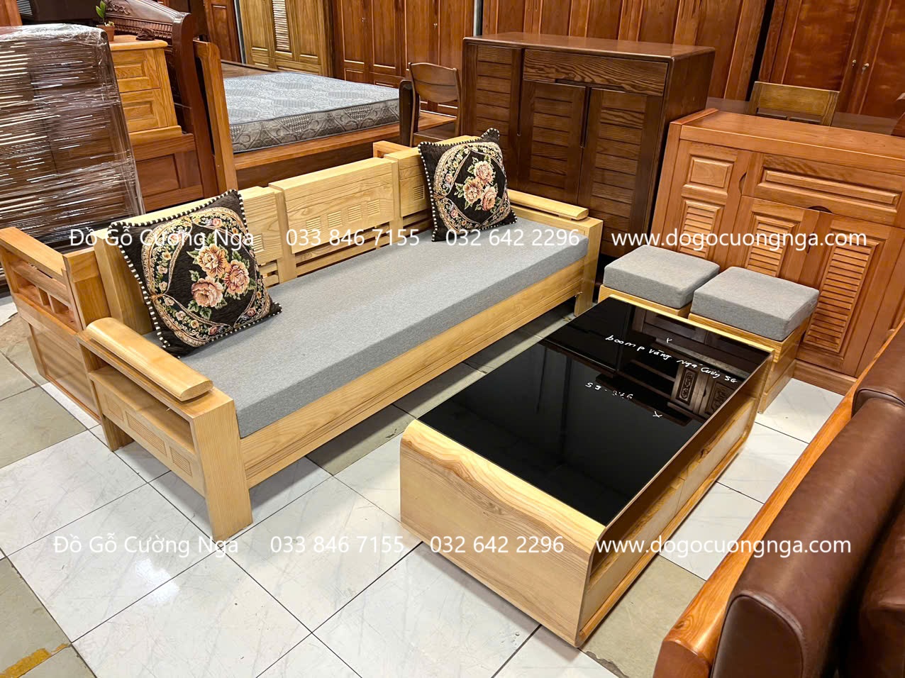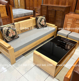 Bộ sofa văng gỗ sồi màu tự nhiên 4 món