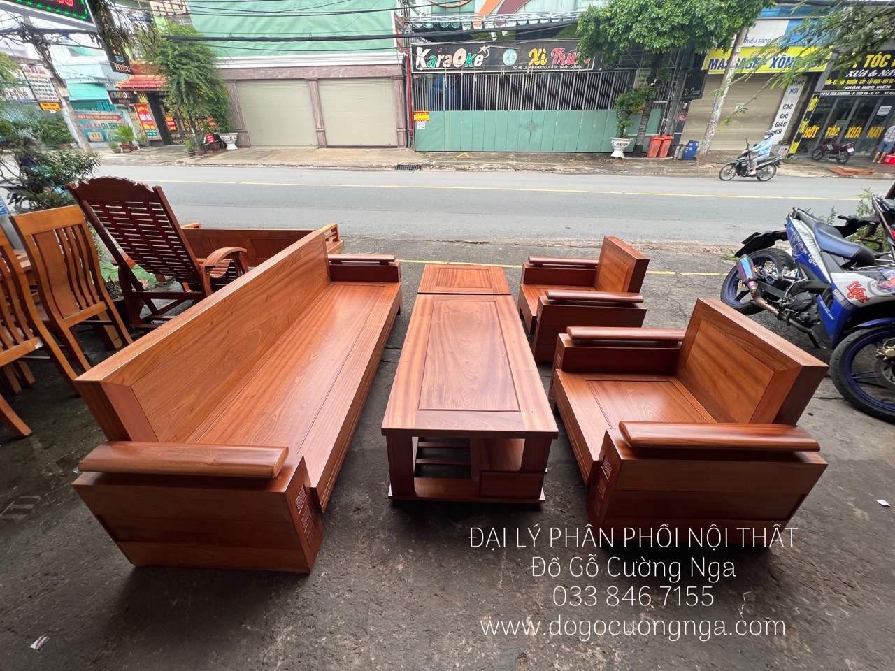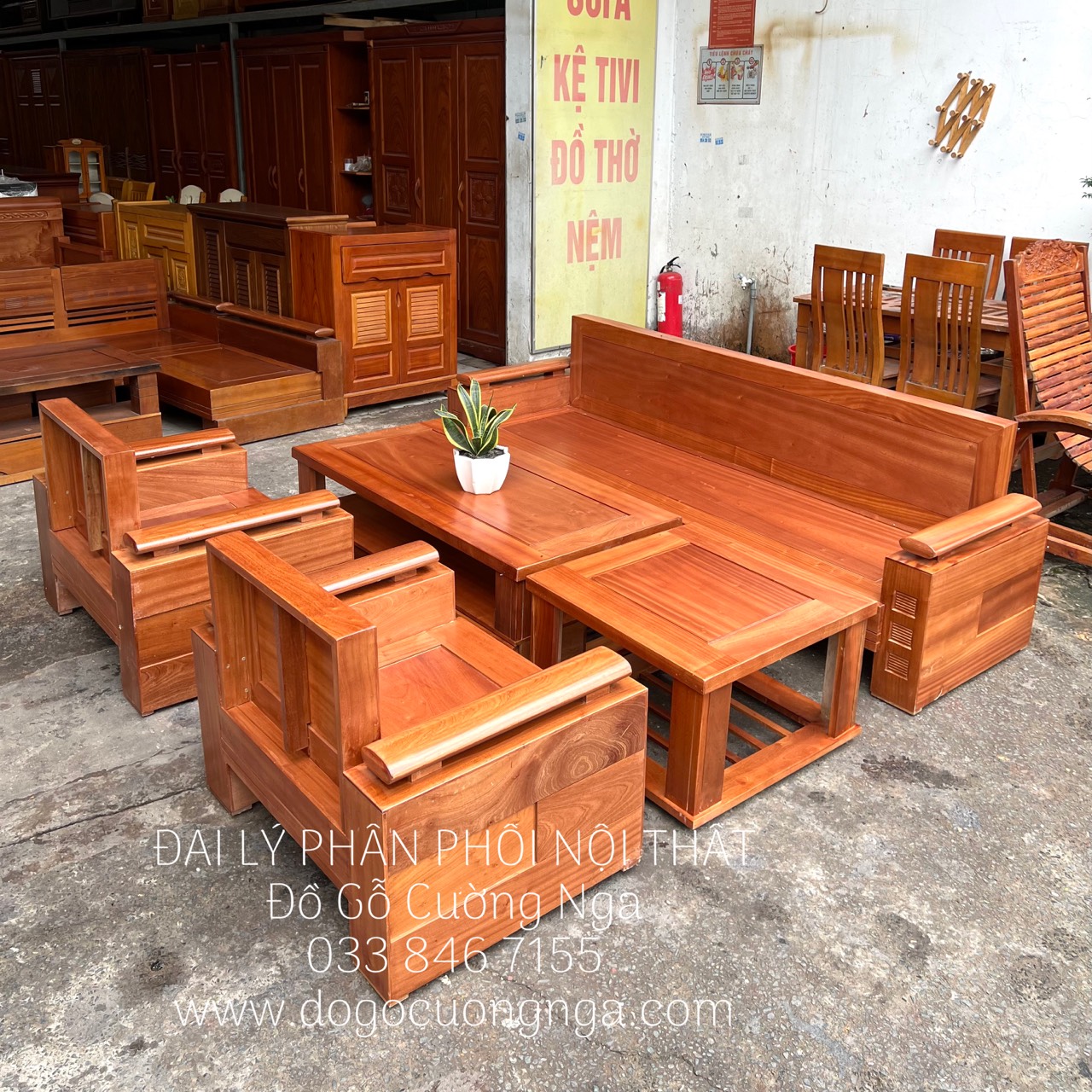 Bộ bàn ghế phòng khách gỗ xoan đào cao cấp phù hợp diện tích vừa và lớn