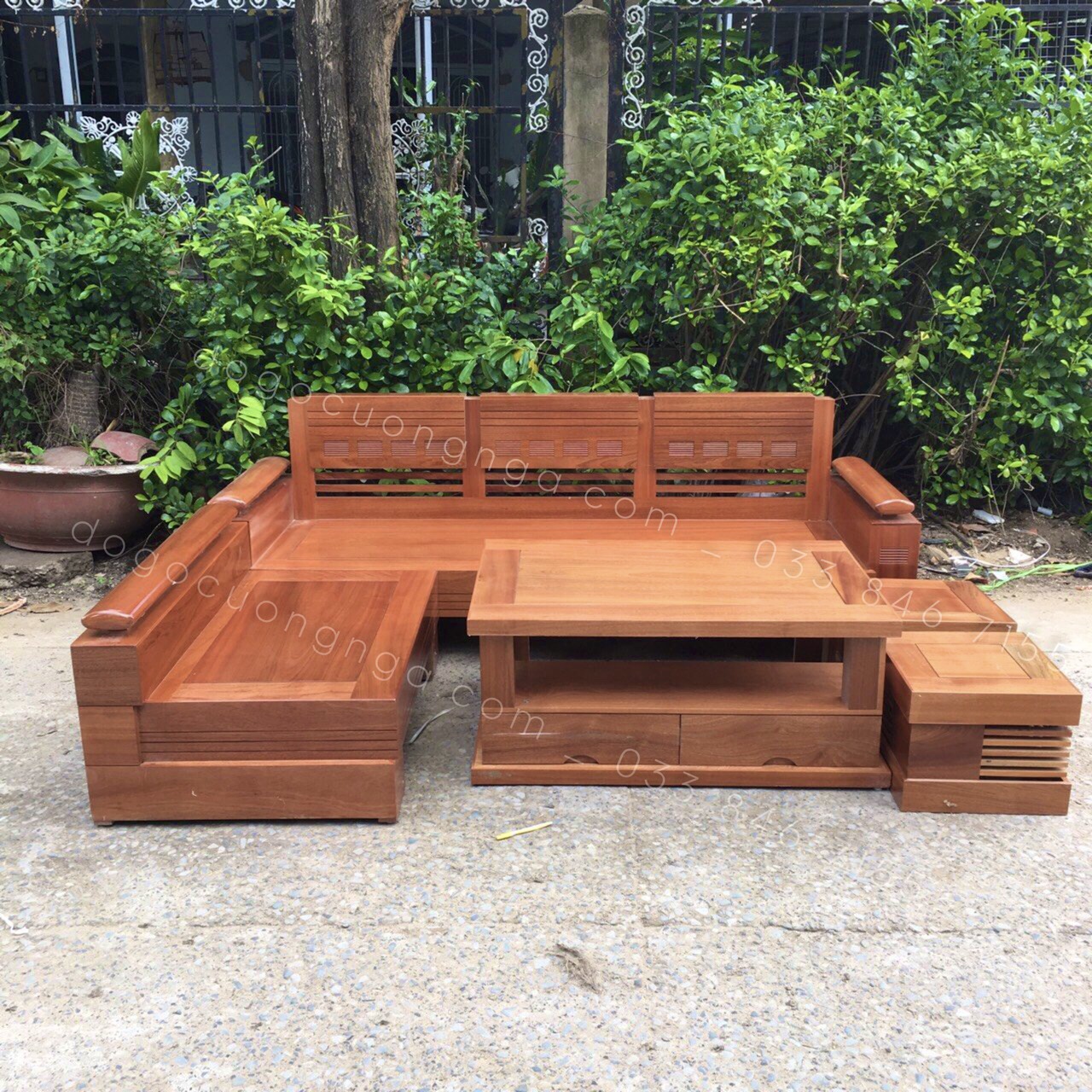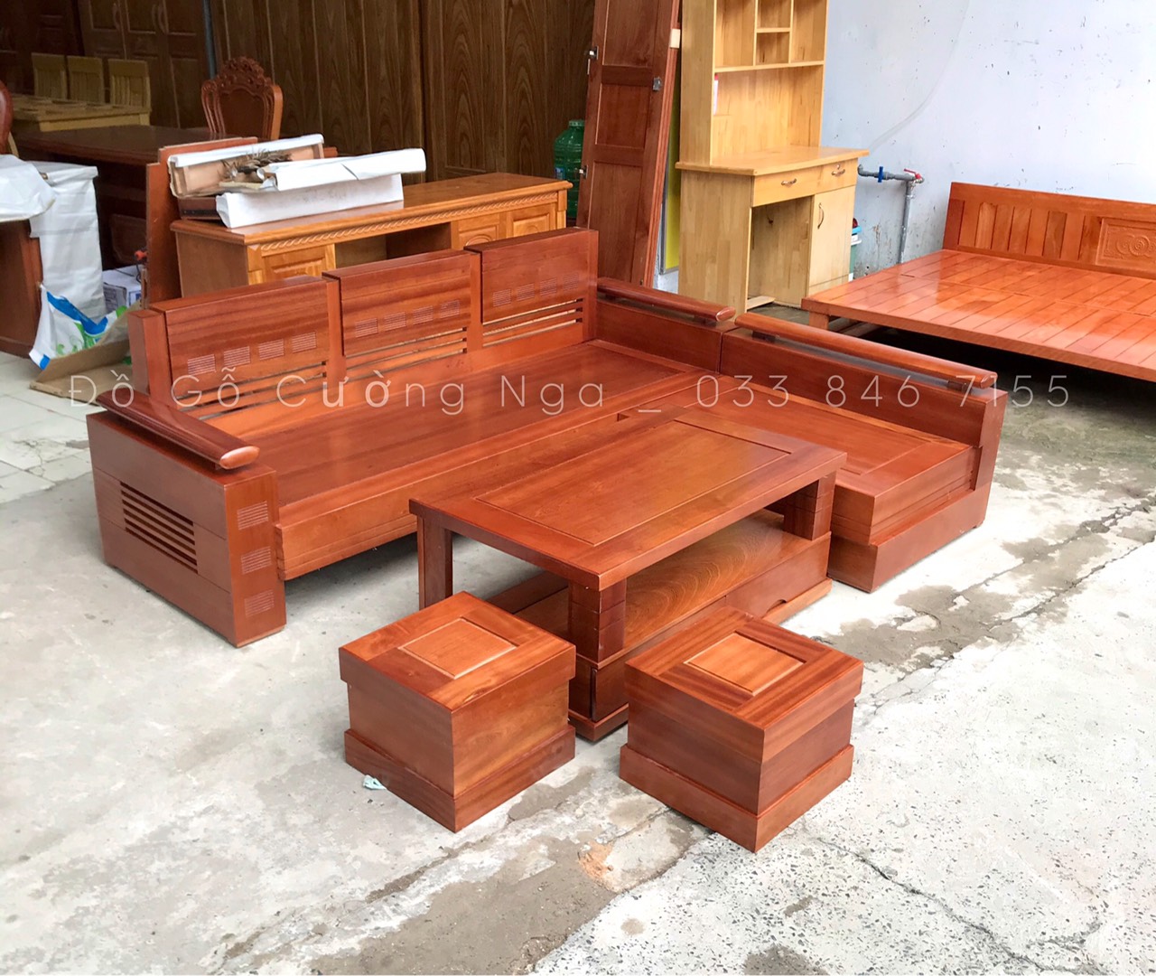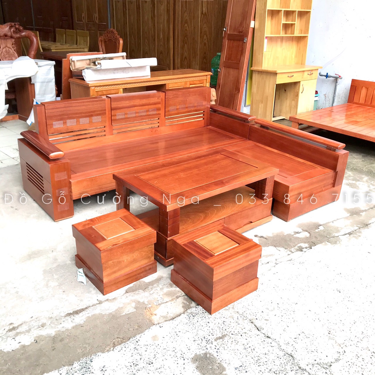 Chi Tết Bộ Sofa Góc L Gỗ Xoan Đào
