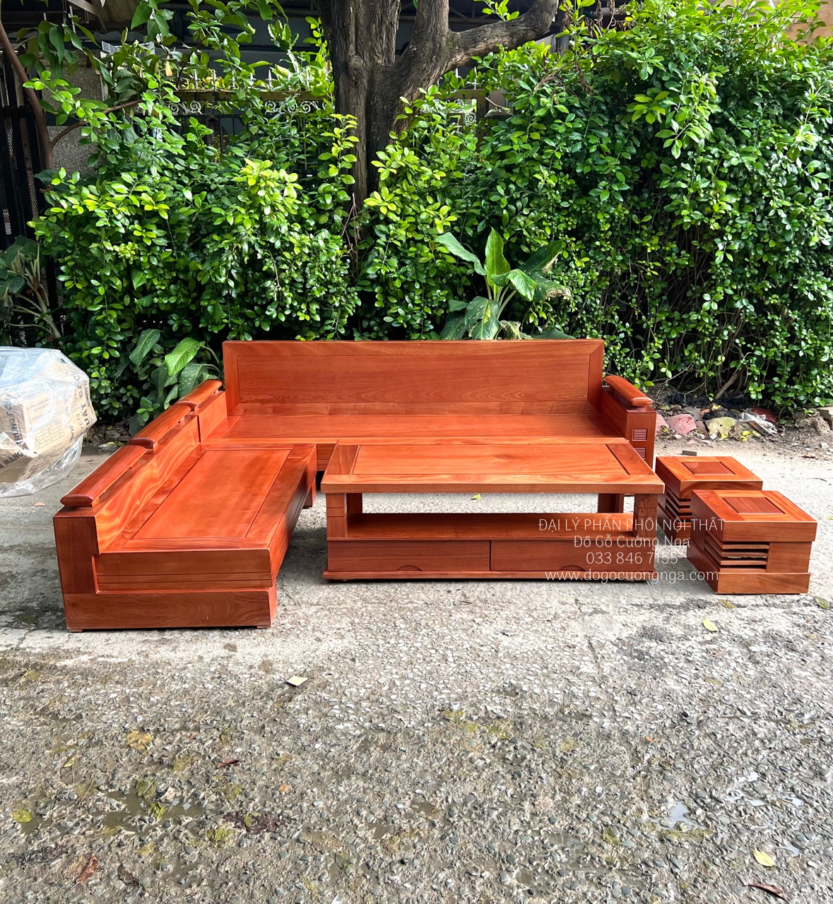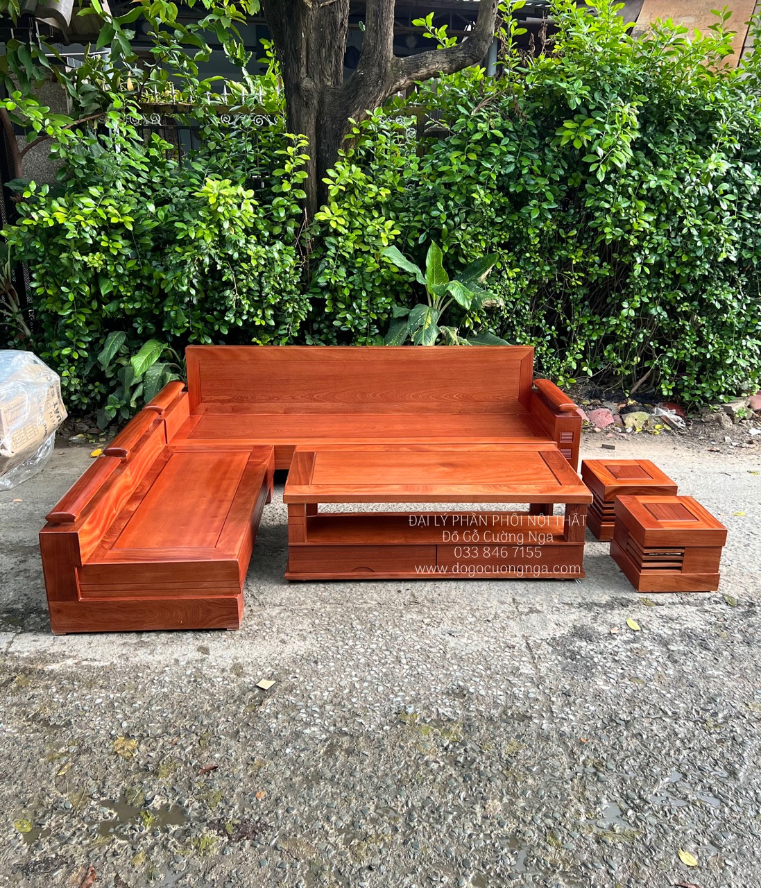 Chi tết bộ sofa góc L gỗ Xoan Đào