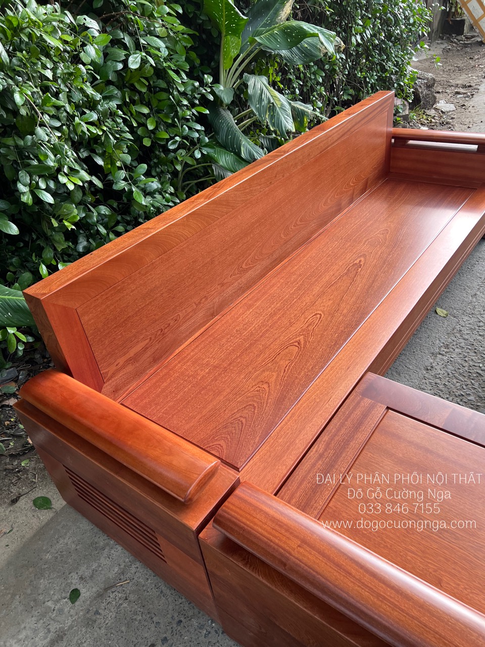 Sofa Góc L Gỗ Xoan Đào Cao Cấp 2m4x2m - Lưng Liền