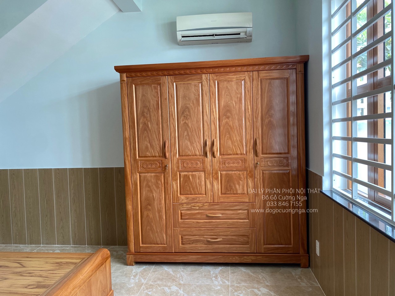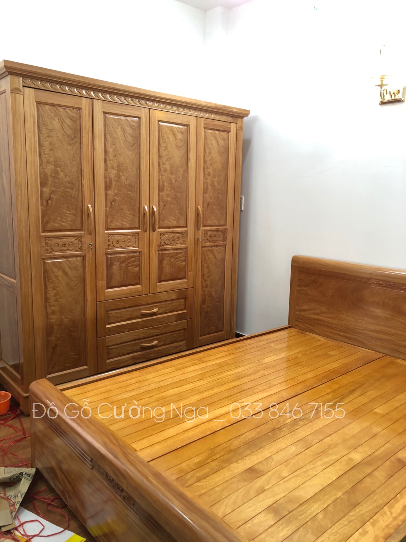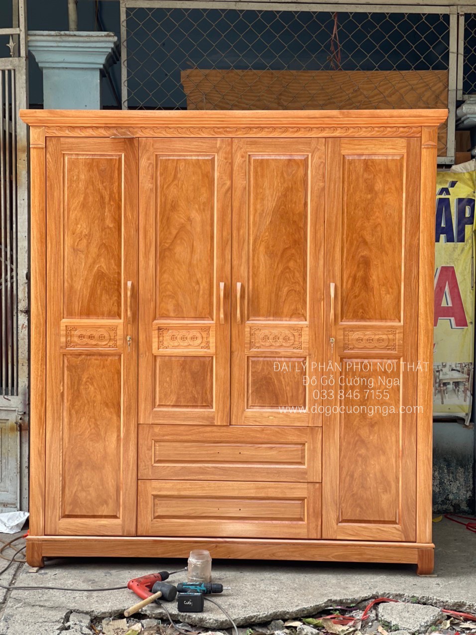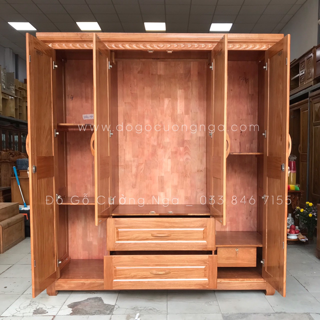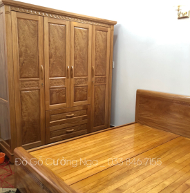 Chi tiết tủ áo gỗ đinh hương 4 cánh giao khách