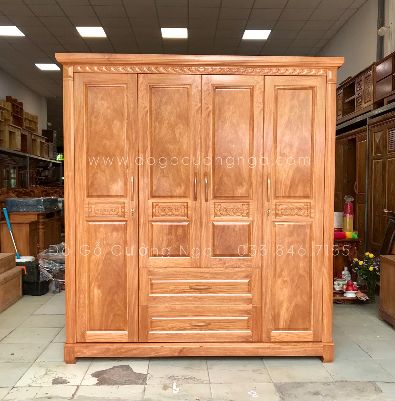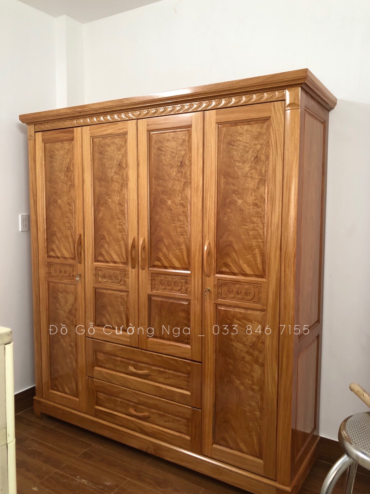 Tủ áo gỗ đinh hương 4 cánh - 2m mẫu đồng tiền