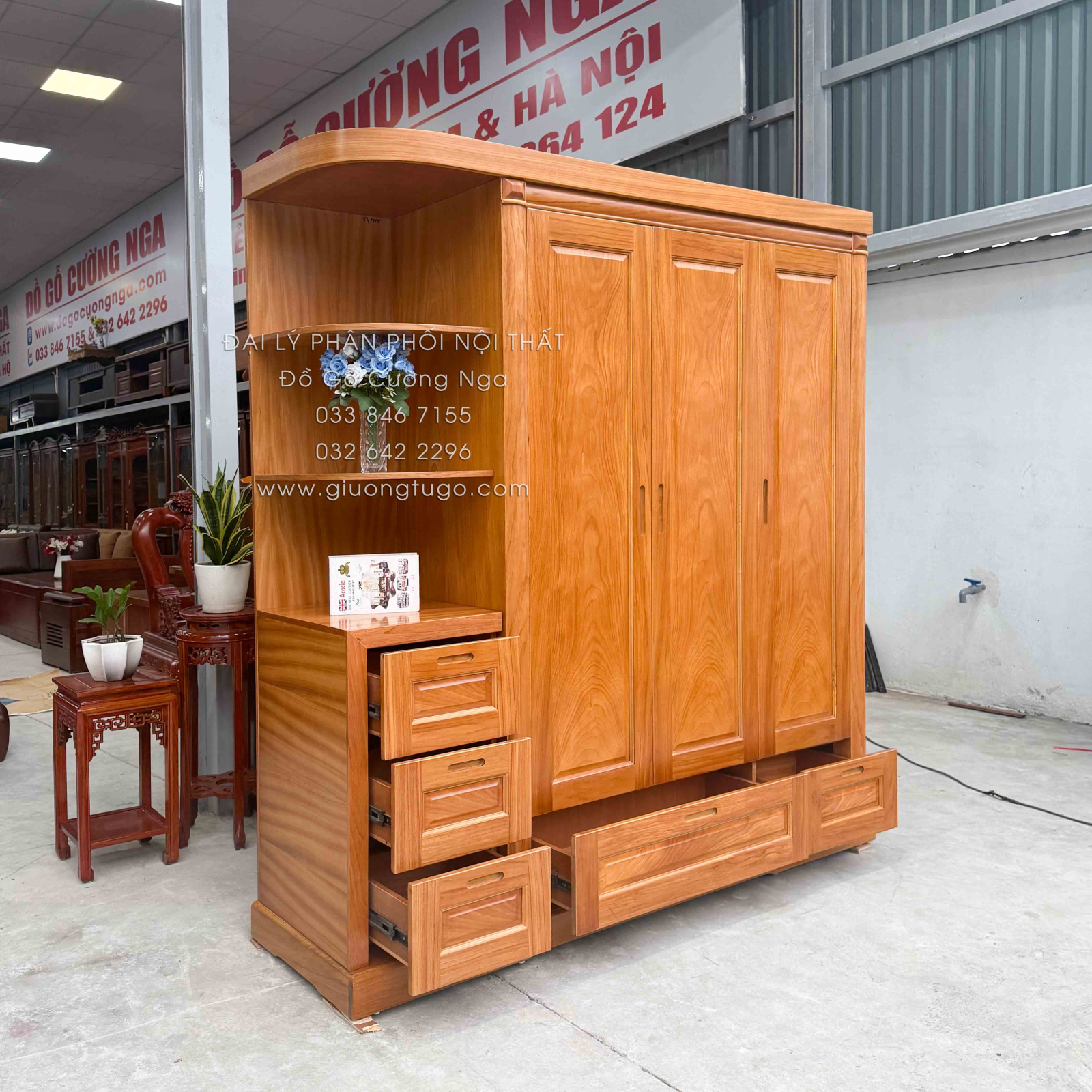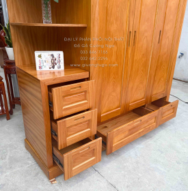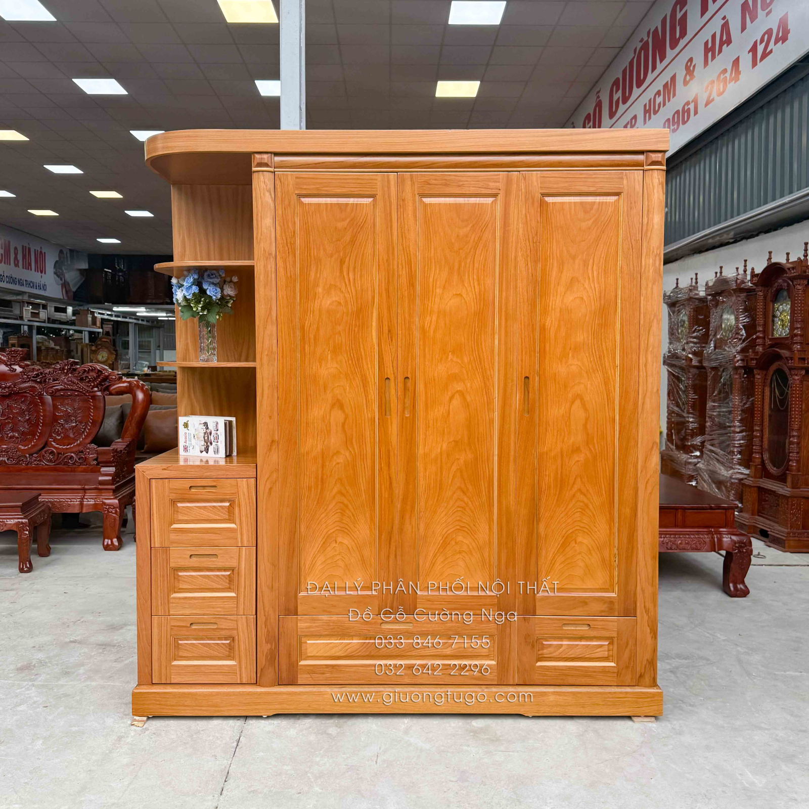 Thông tin chi tiết Tủ Áo Gỗ Gõ Đỏ 3 Cánh Kèm Góc Trang Trí Bo Cạnh