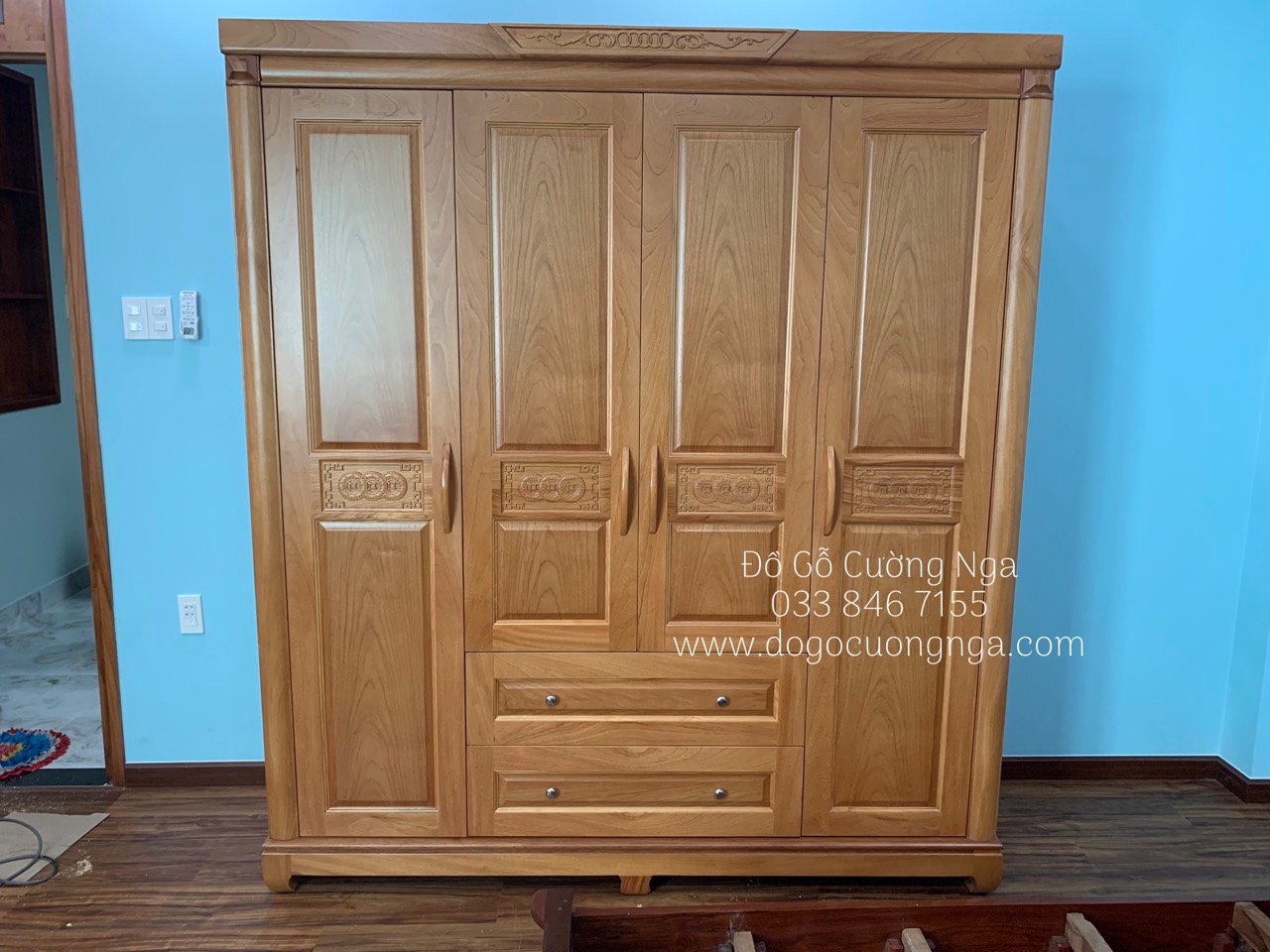 Tủ áo gỗ gõ đỏ 4 cánh - mẫu đồng tiền