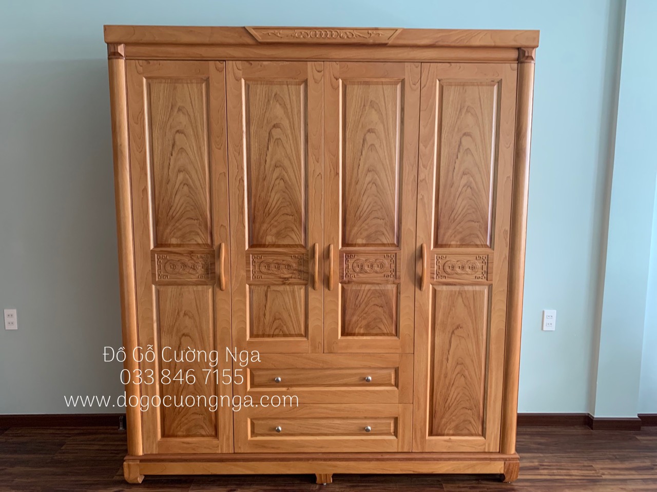 Tủ quần áo gỗ gõ đỏ 4 cánh cao cấp