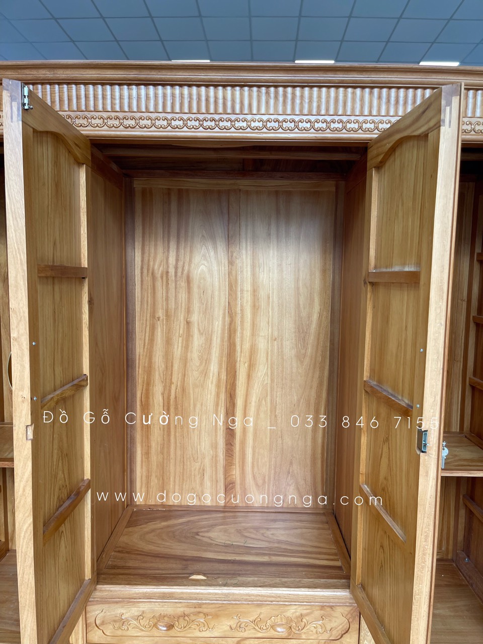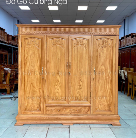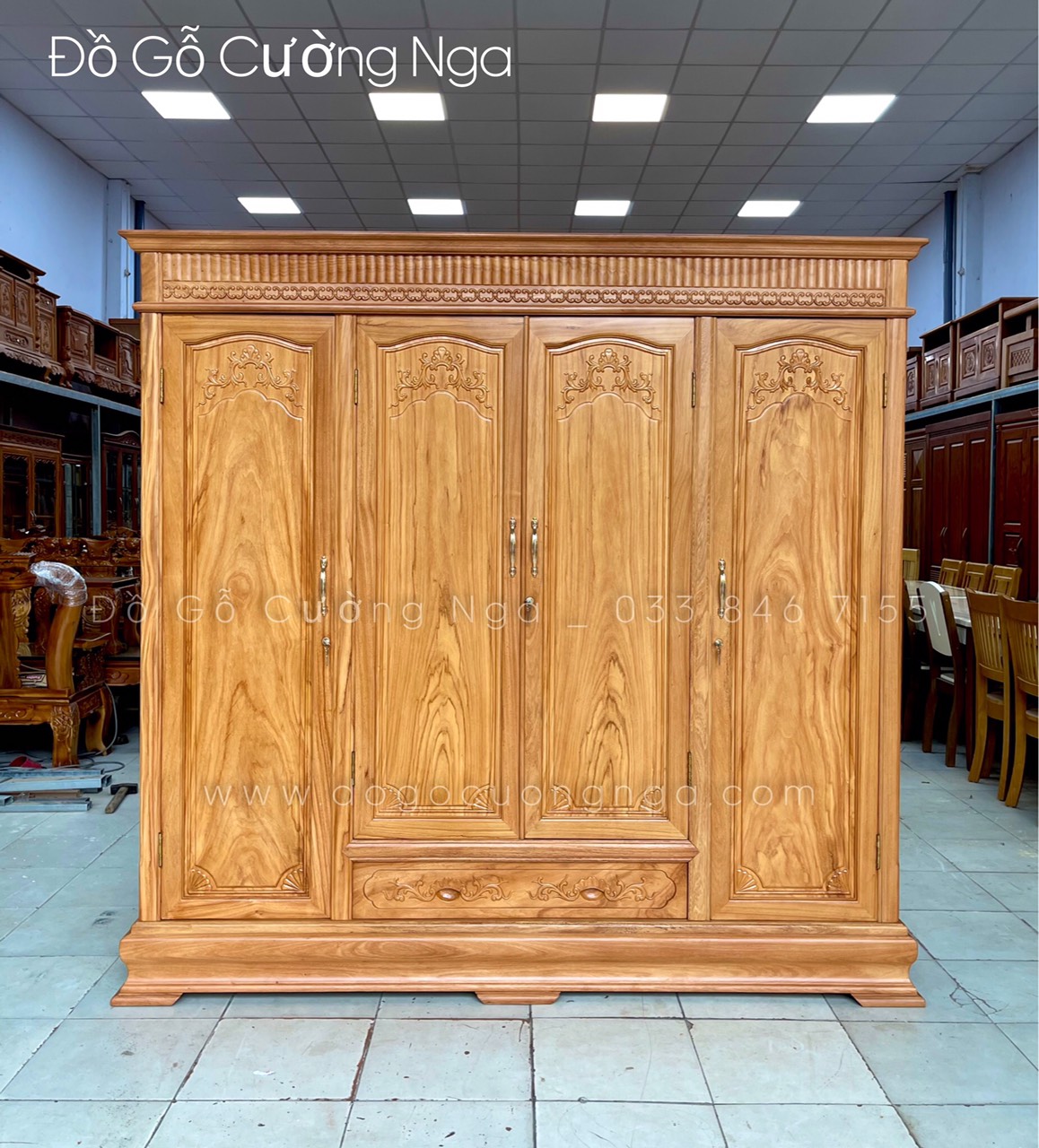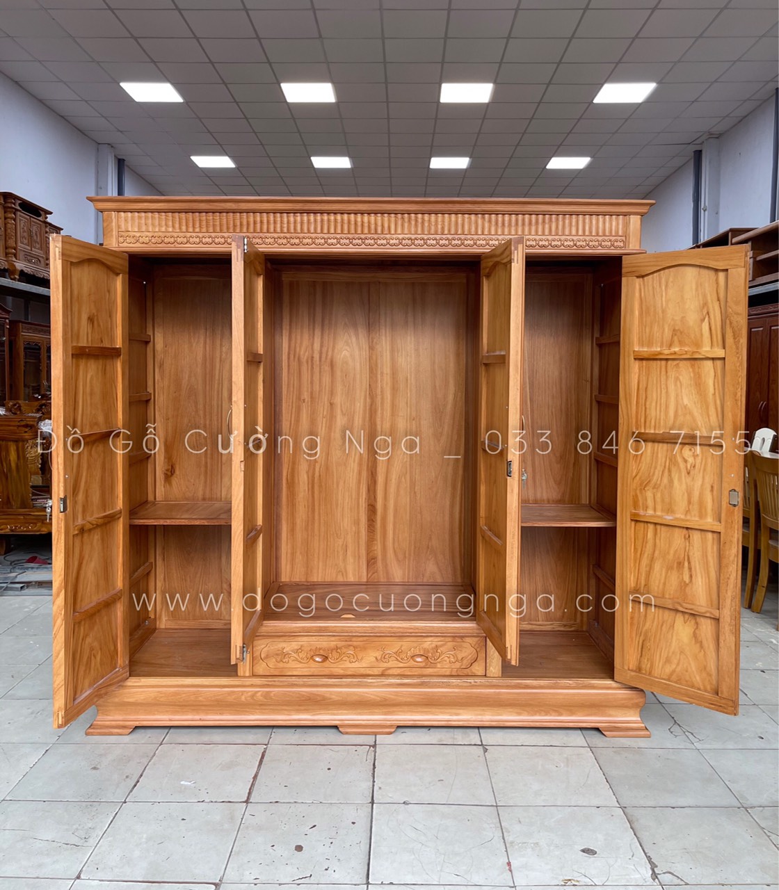Tủ áo gỗ gõ đỏ cao cấp 4 cánh - 3 buồng