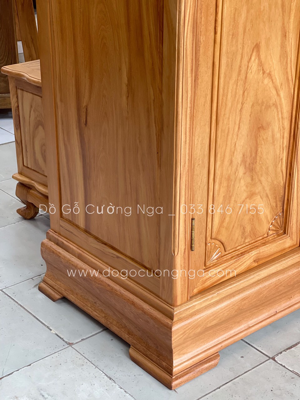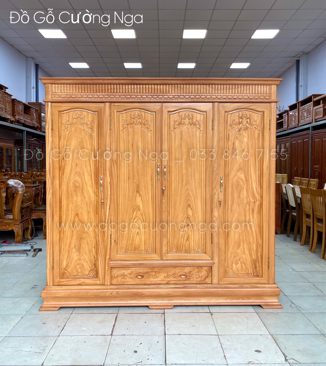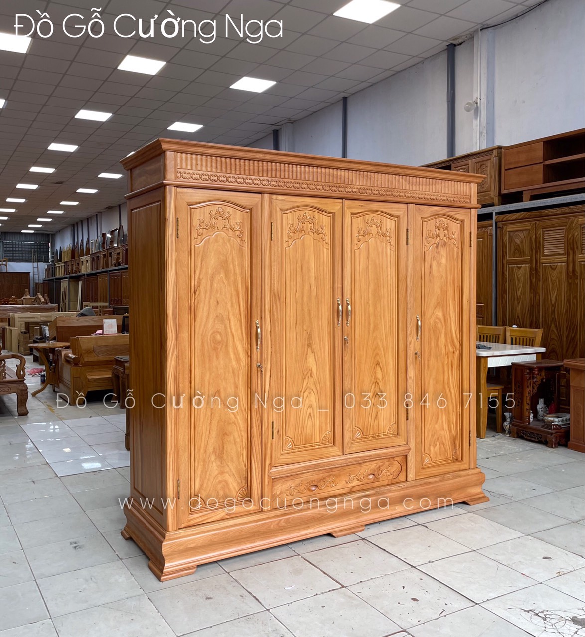 Tủ áo gỗ gõ đỏ 4 cánh - 2m1 mẫu phào vuông