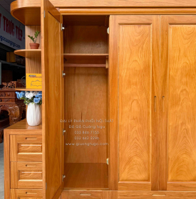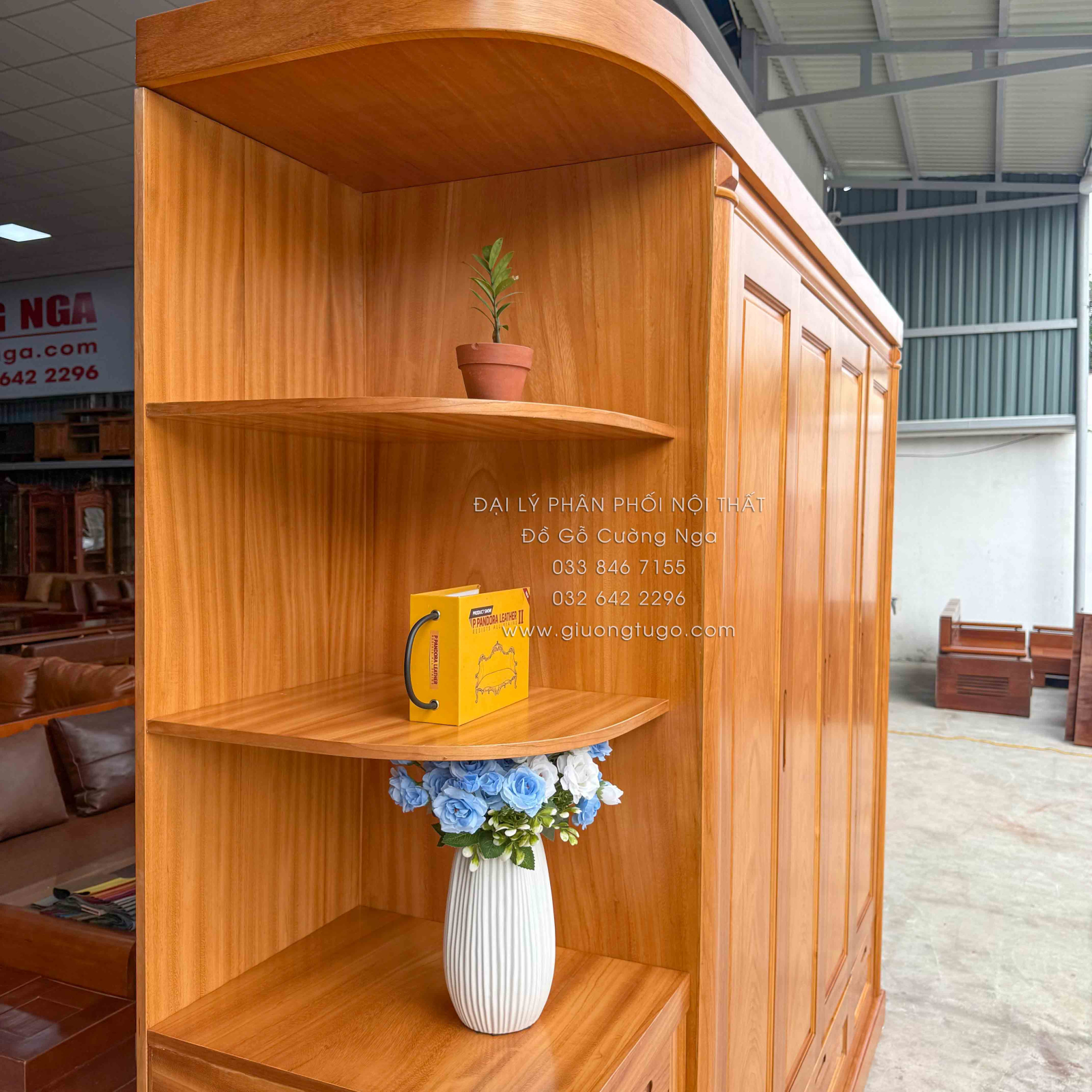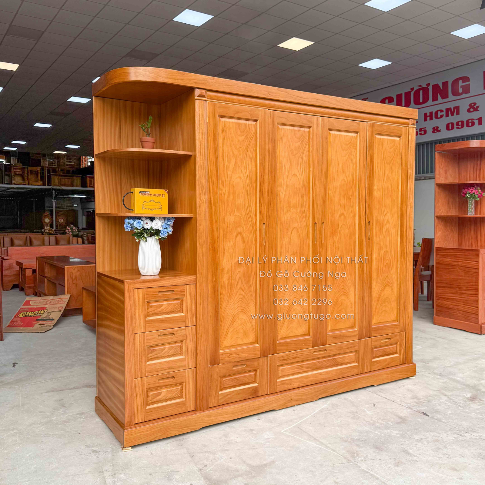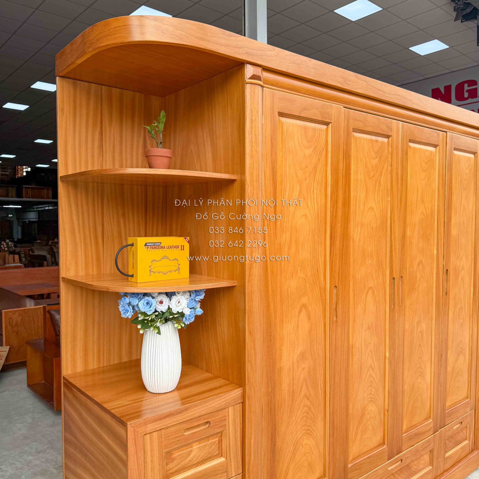 Tủ Áo Gỗ Gõ Đỏ 4 Cánh Kèm Góc Trang Trí Bo Cạnh