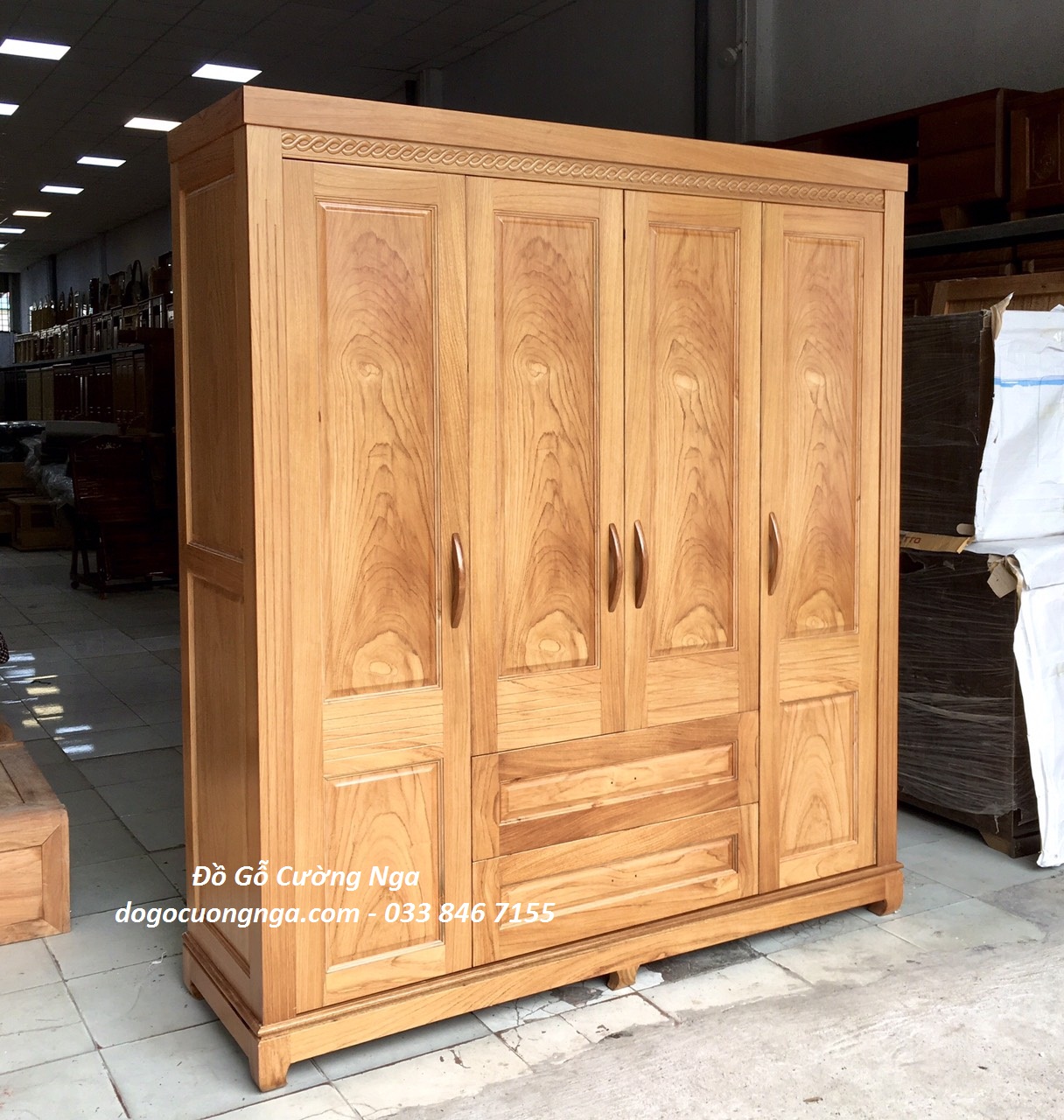 Tủ quần áo gỗ gõ đỏ 4 cánh cao cấp