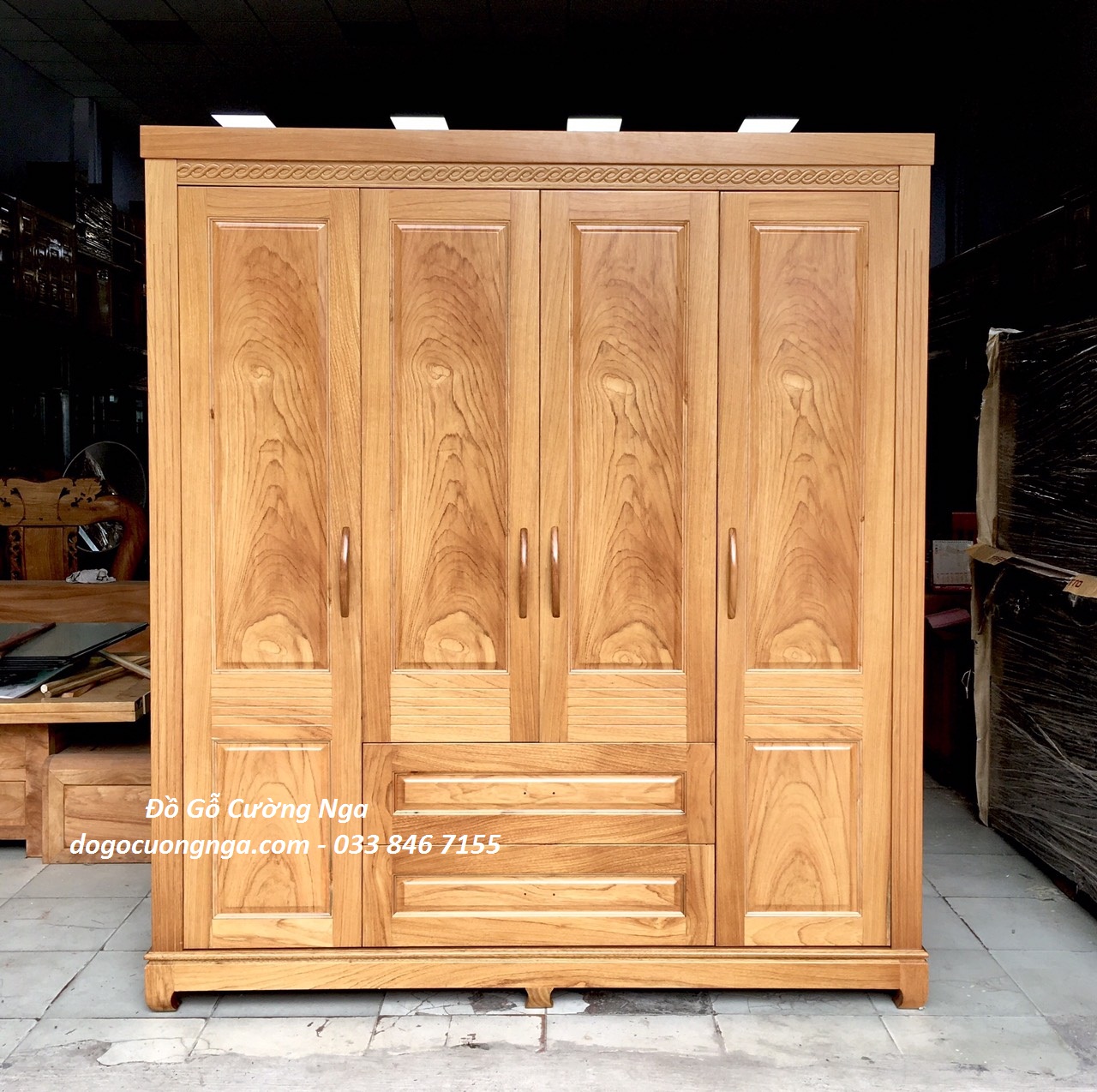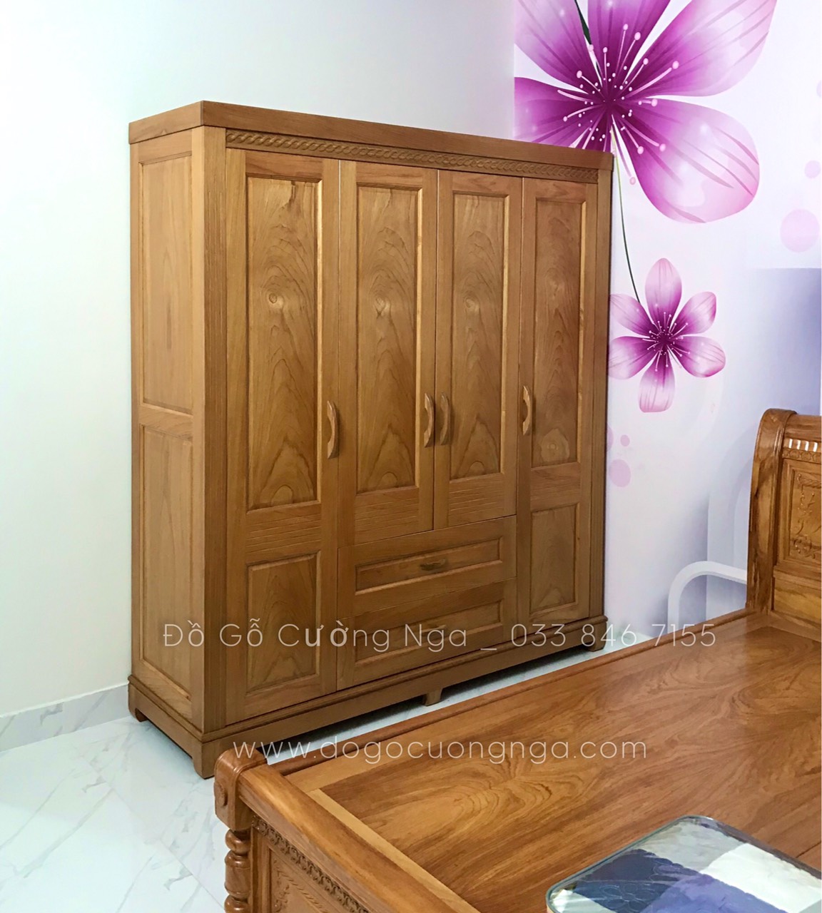 Tủ áo gỗ gõ đỏ 4 cánh giao khách