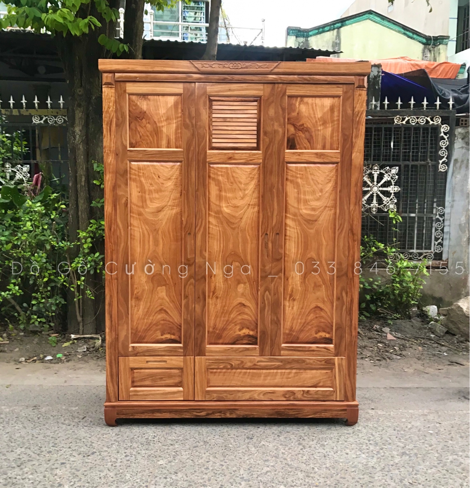 Tủ áo gỗ hương xám 3 cánh - 1m6 mẫu chóp
