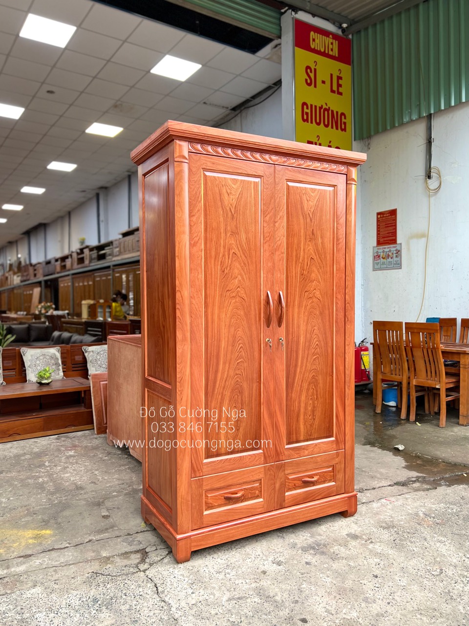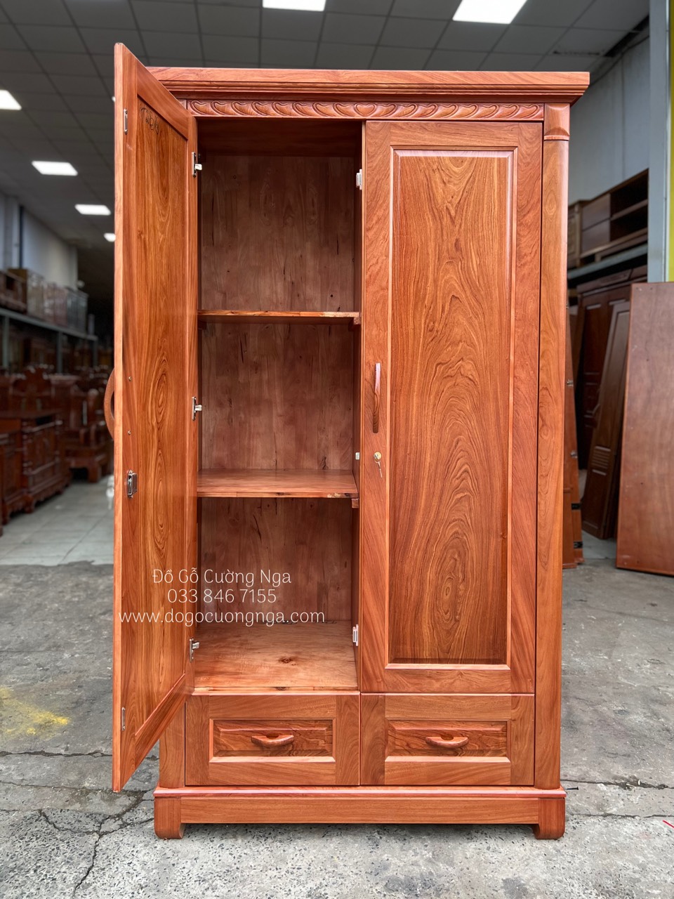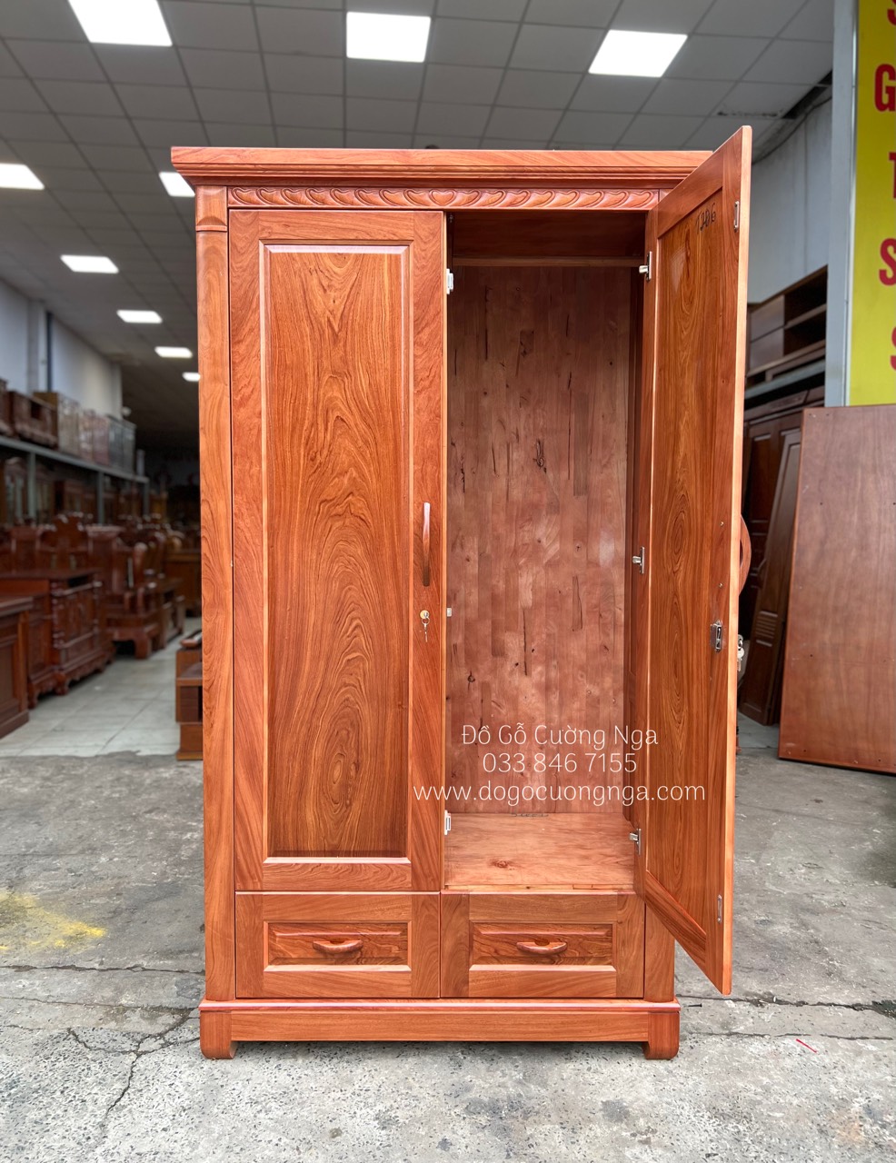 Chi tiết tủ áo gỗ hương đá 2 cánh 1m2