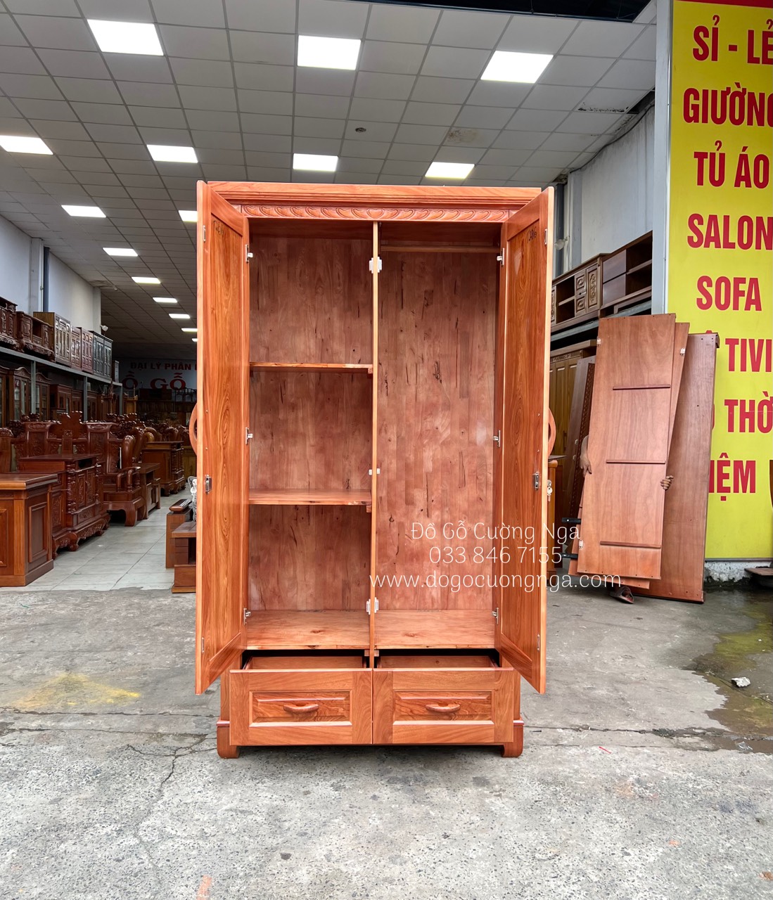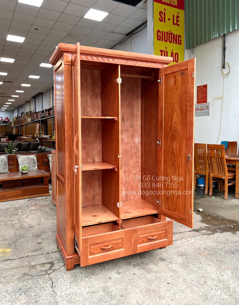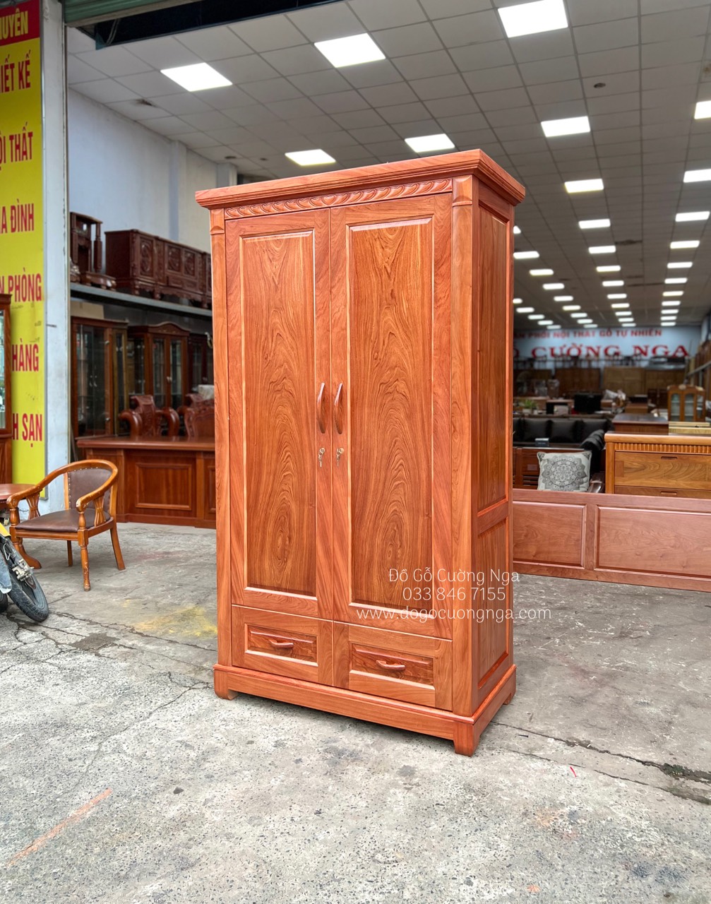 Chi tiết tủ áo gỗ hương đá 2 cánh 1m2