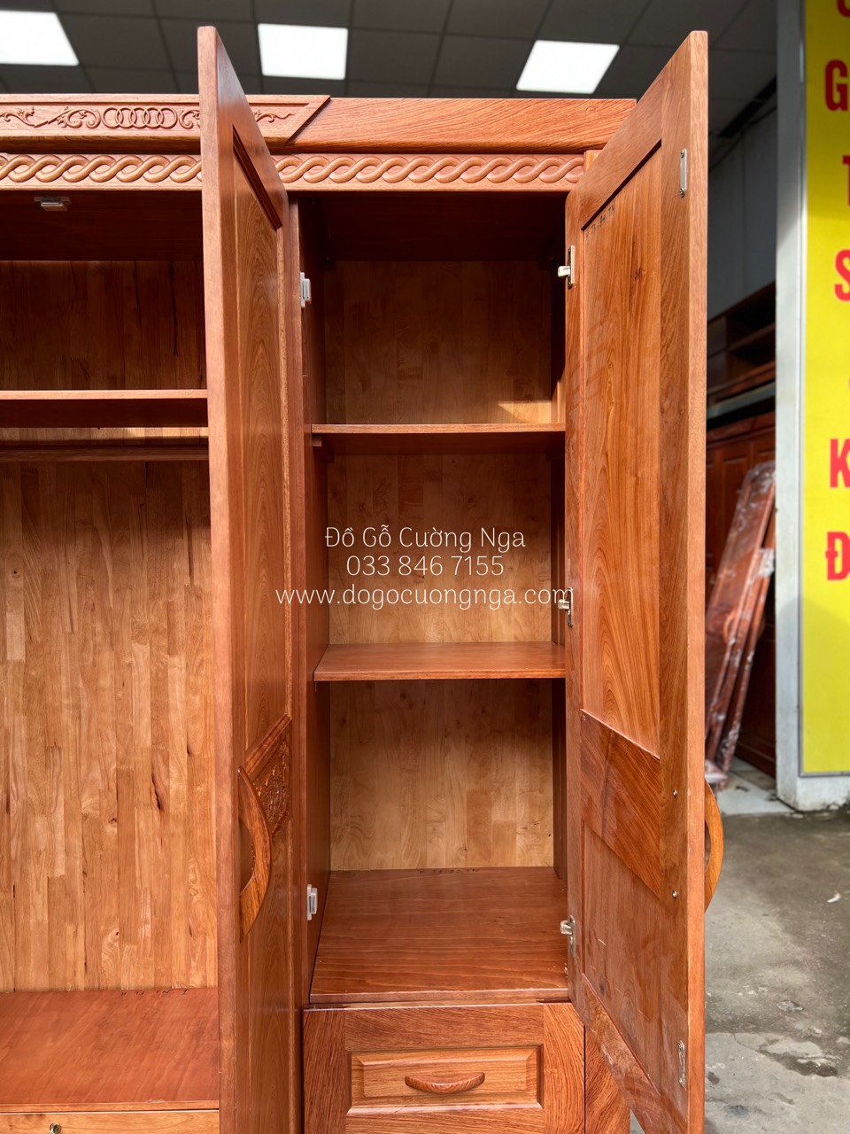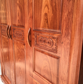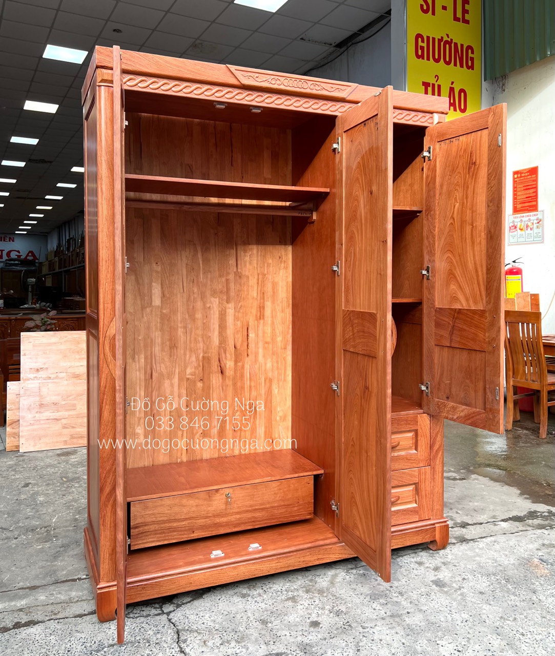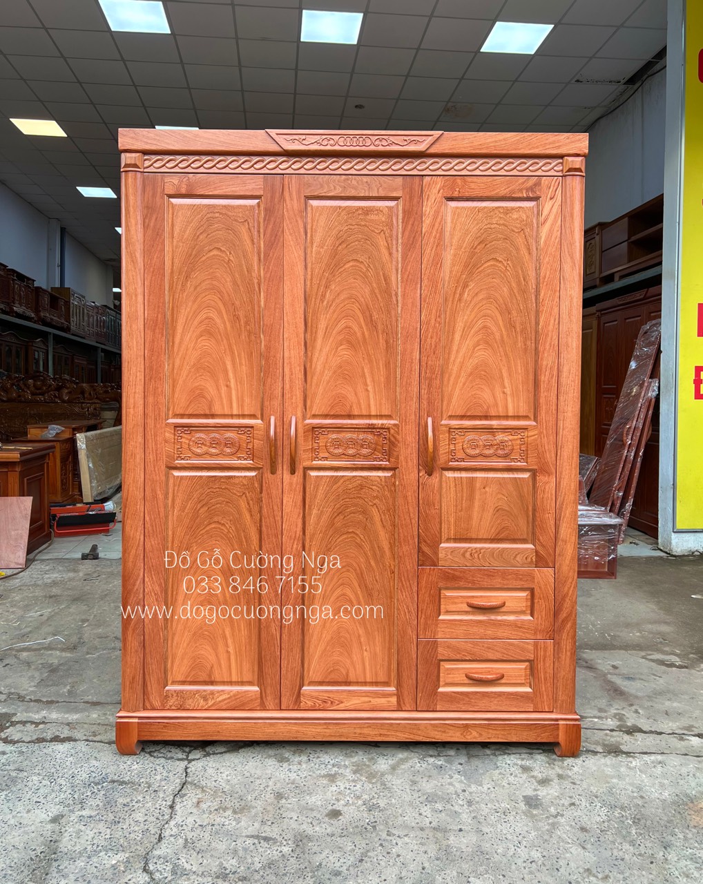 Chi tiết tủ áo gỗ hương đá 3 cánh
