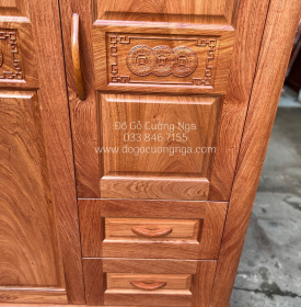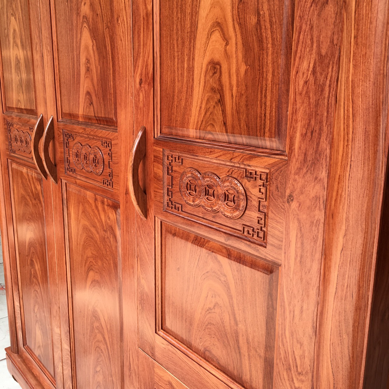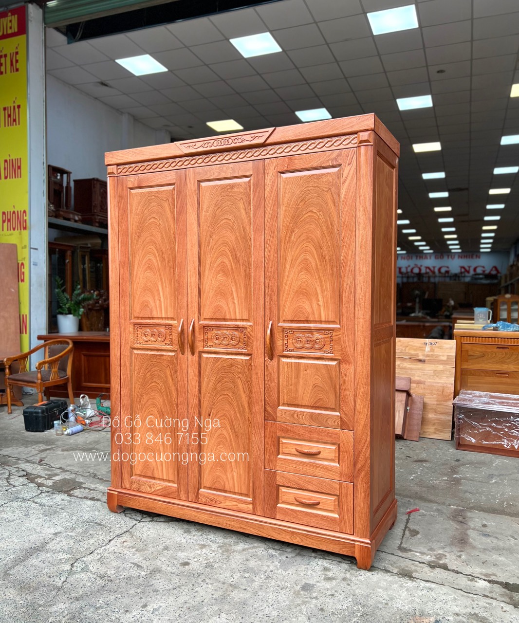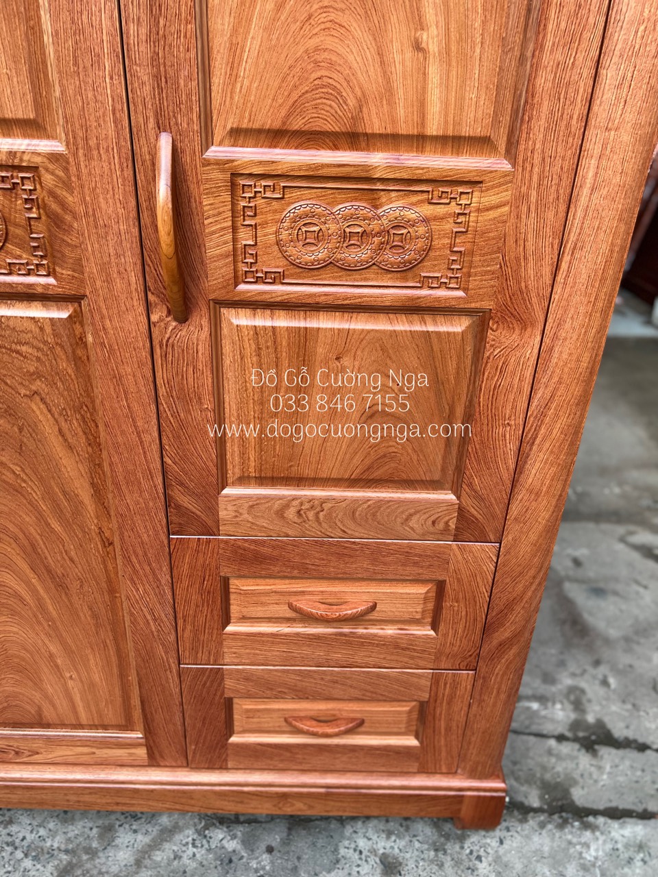 Tủ áo gỗ hương đá - 3 cánh mẫu đồng tiền