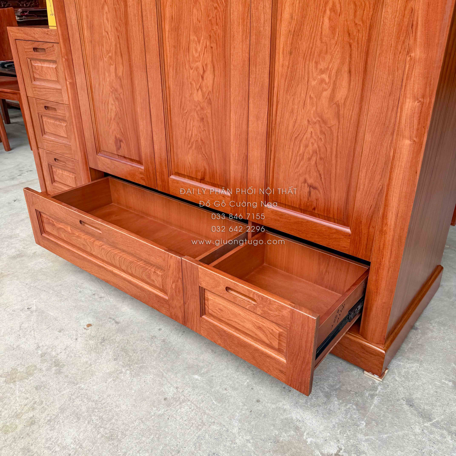 Thông tin chi tiết Tủ Áo Gỗ Hương Đá 3 Cánh Kèm Góc Trang Trí Bo Cạnh
