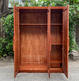 Tủ quần áo 3 cánh gỗ Hương đá có cấu tạo thông thường gồm 1 ngăn chính lớn, 1 ngăn nhỏ. Hai ngăn nhỏ được phân chia nhiều khung, có thể đựng cả túi xách lẫn tư trang. Kích thước tủ nằm trong khoảng chiều cao từ 1,5m đến 1,6m, chiều cao từ 2 m trở lên.