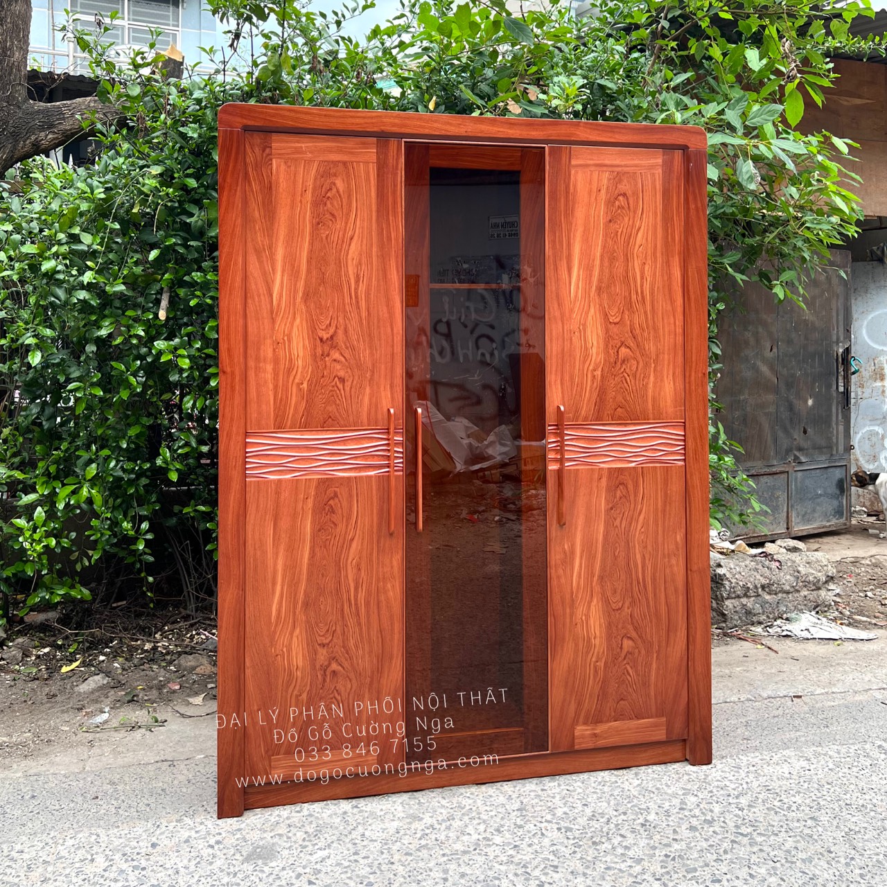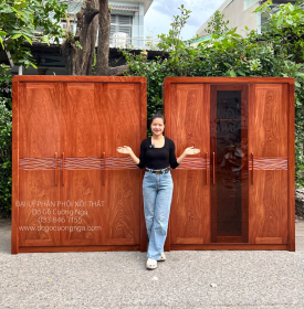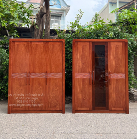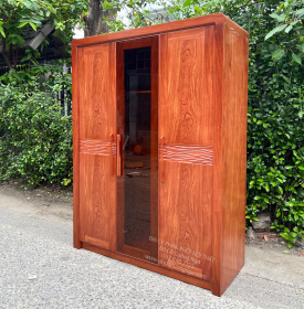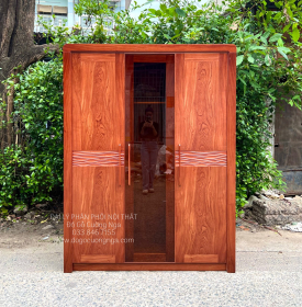 Tủ Áo Gỗ Hương Đá 3 Cánh Kết Hợp Kính Trà Cường Lực Bắt Mắt