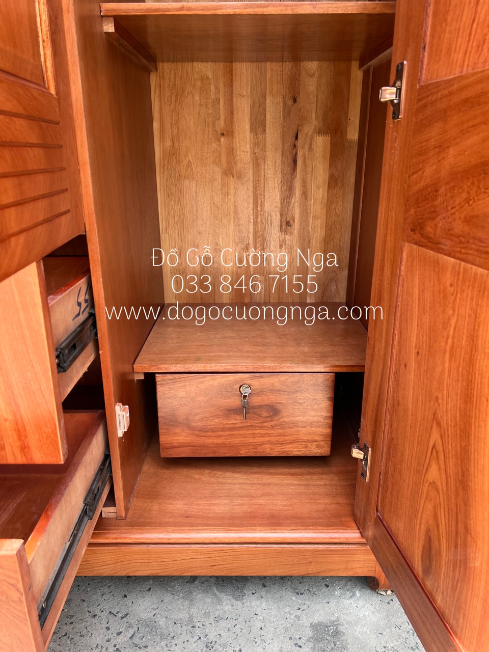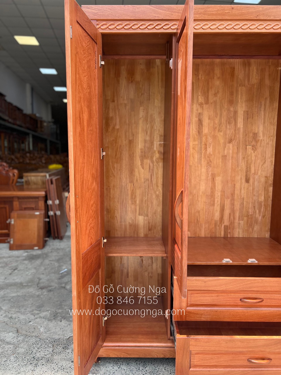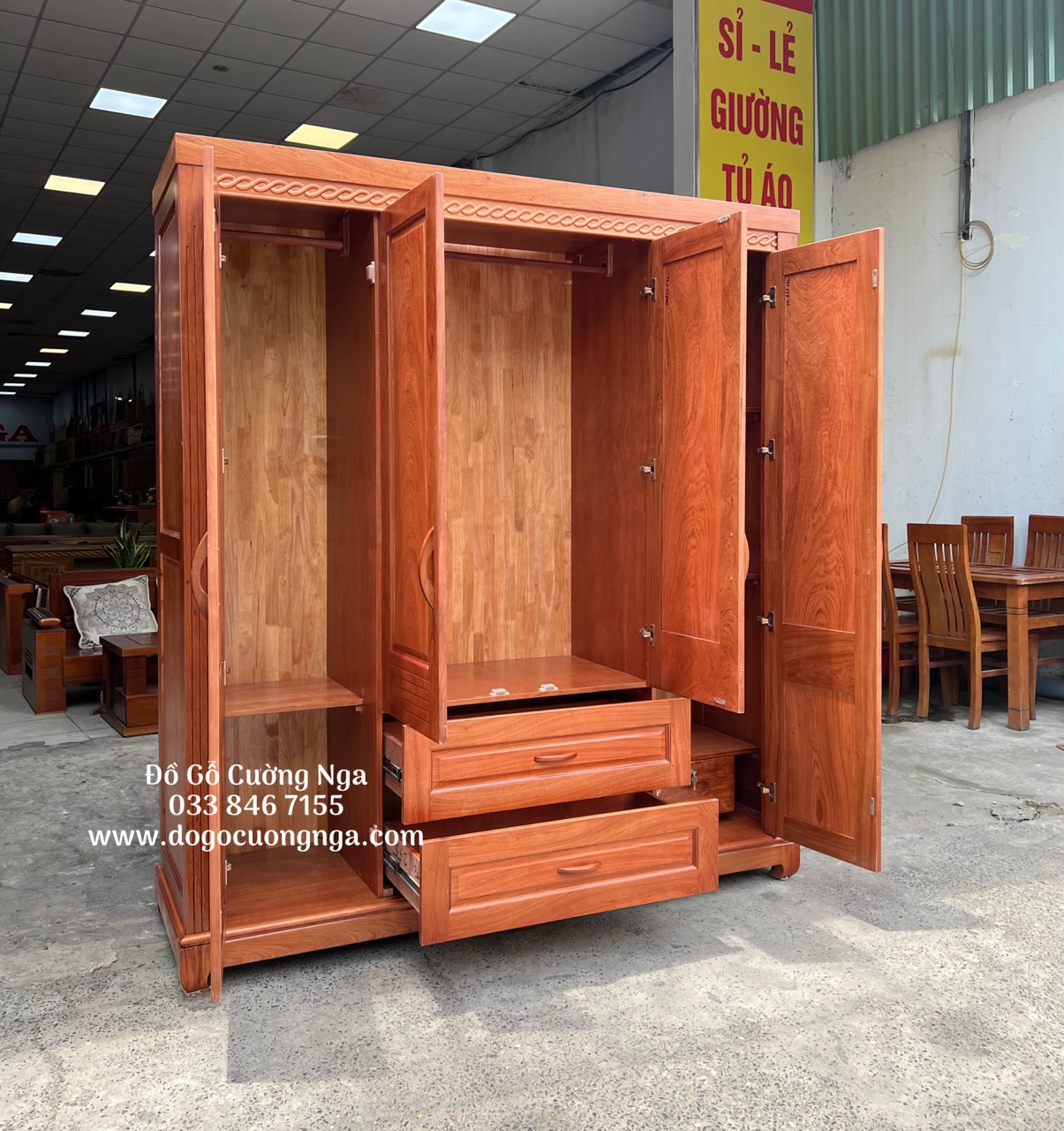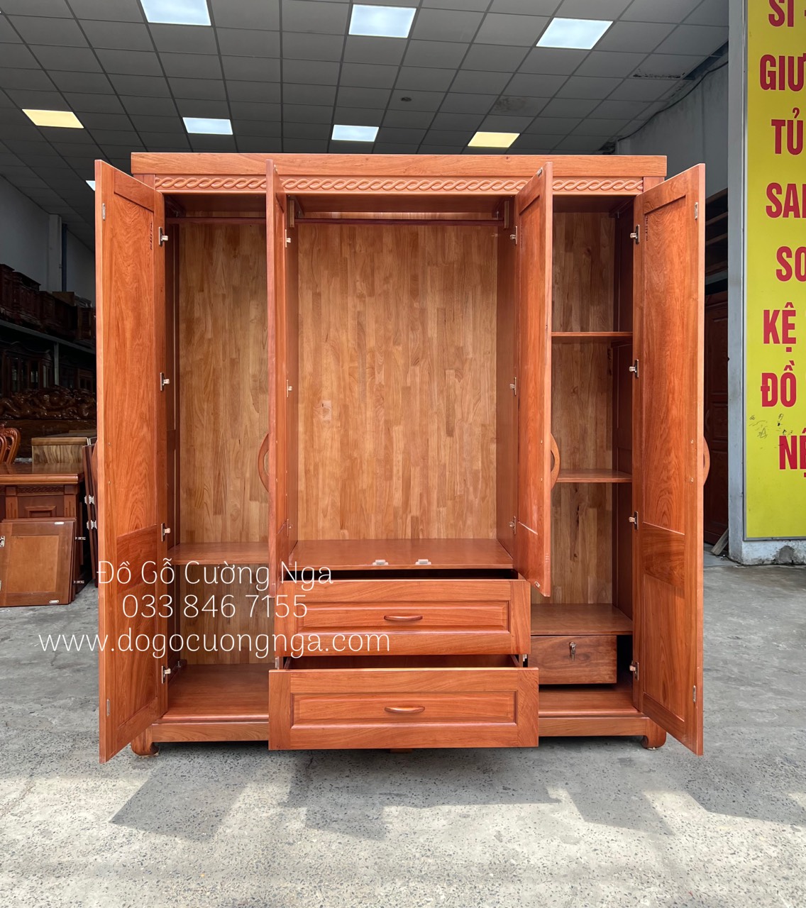 Tủ áo gỗ hương đá 4 cánh 3 buồng hiện đại