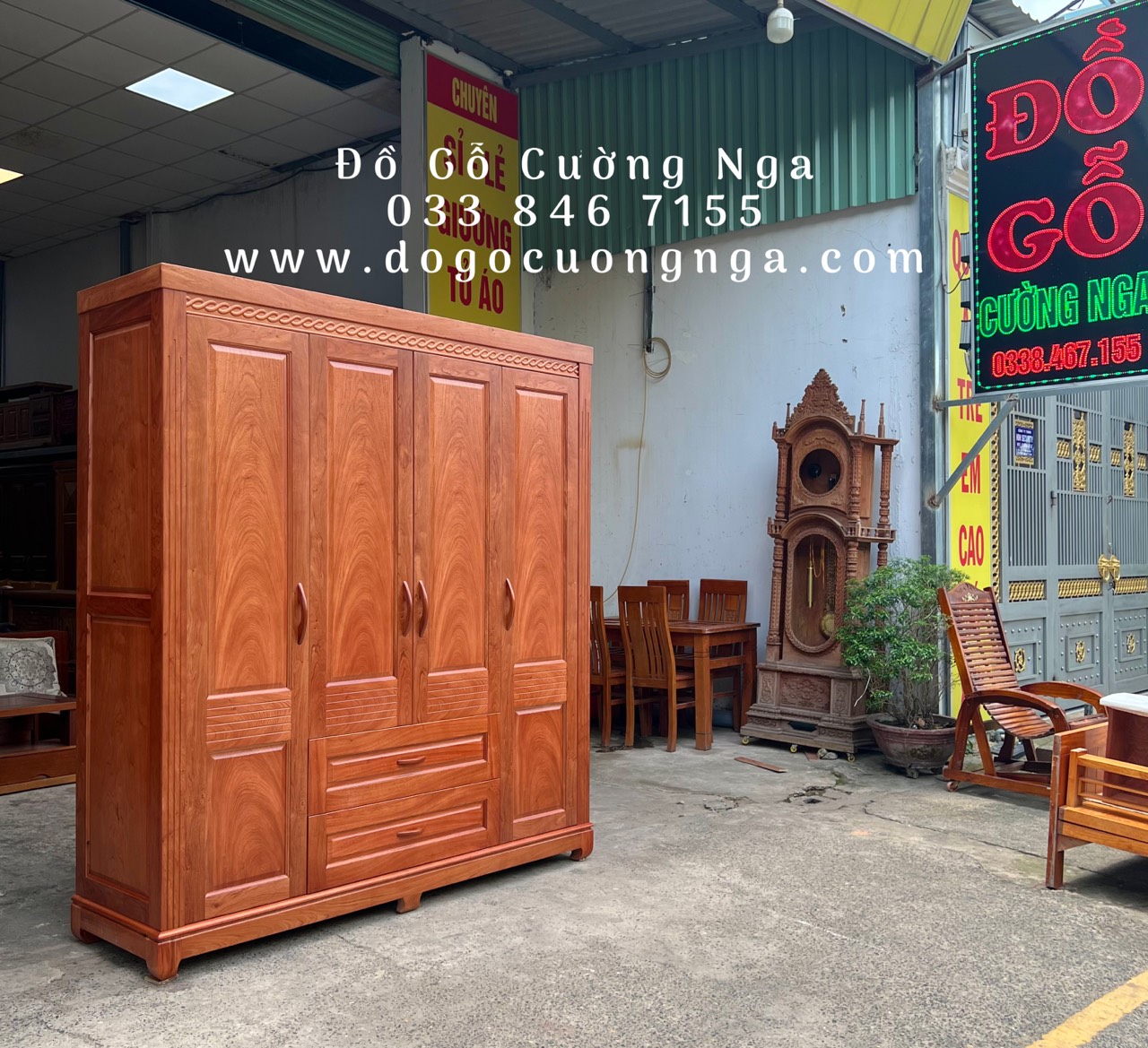 Tủ quần áo gỗ Hương Đá 4 cánh cao cấp
