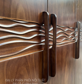 Chi tiết tay nắm tủ áo gỗ hương xám 3 cánh hiện đại