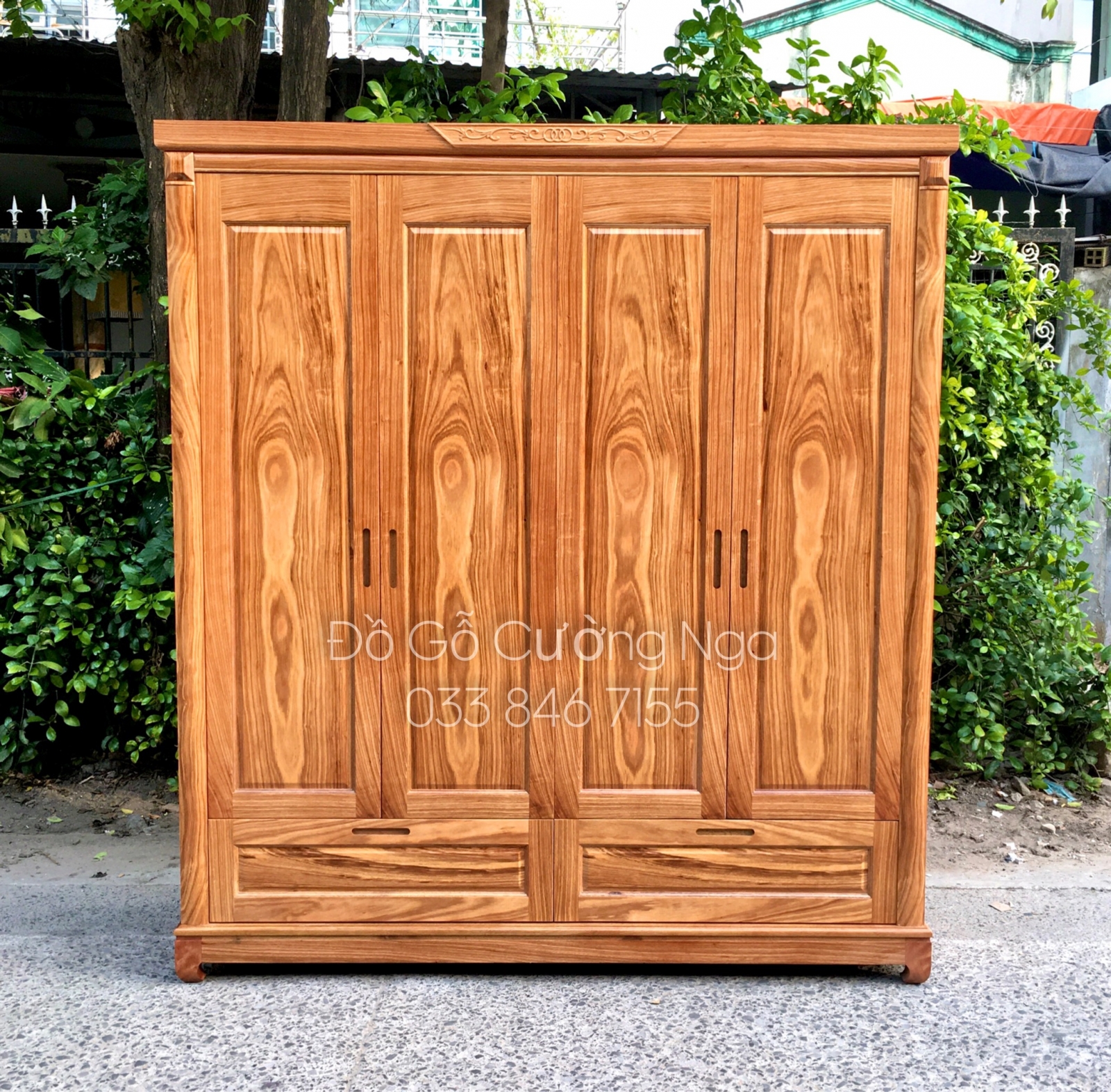 Tủ quần áo gỗ Hương Xám 4 cánh