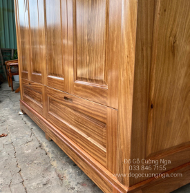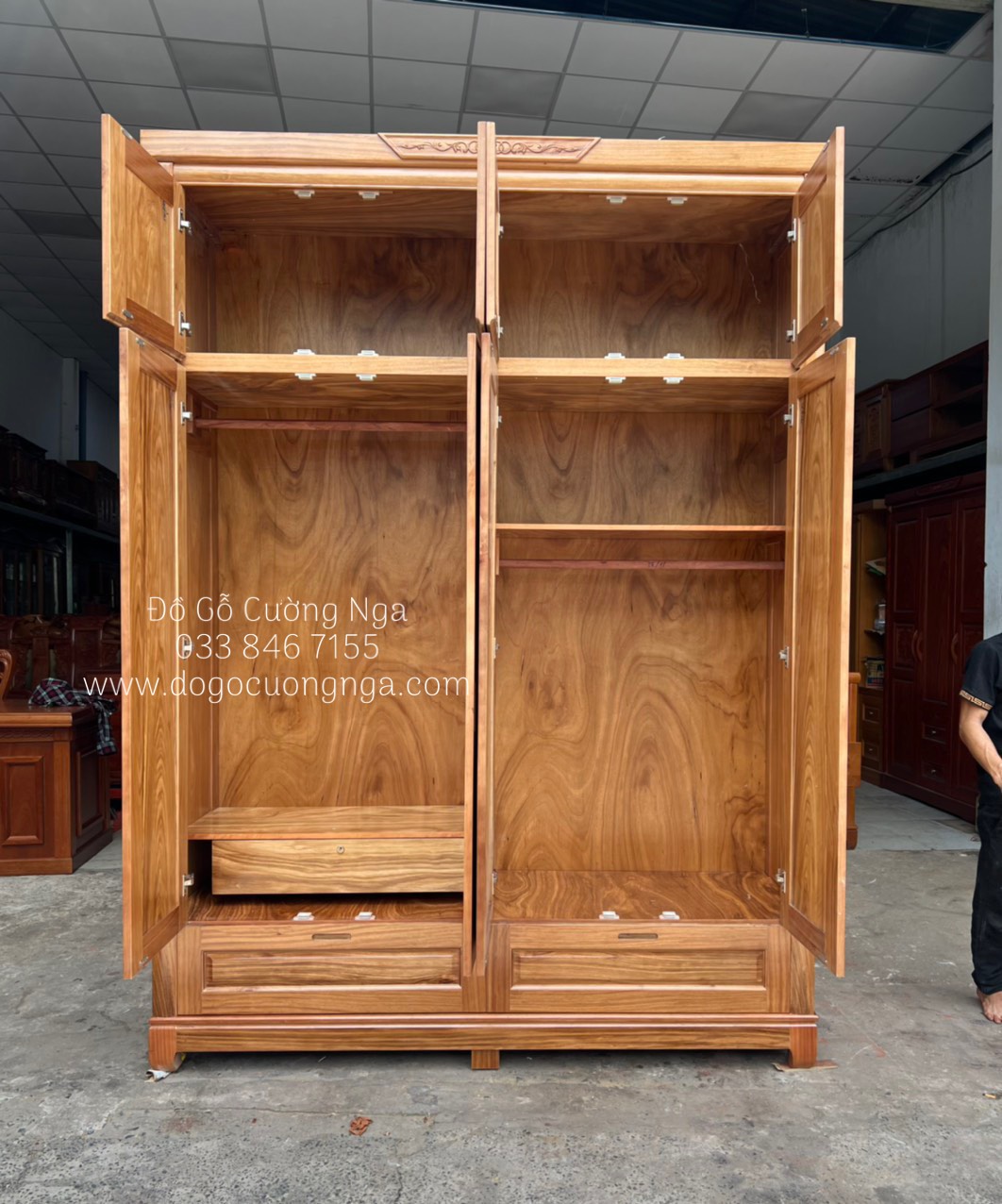 Thông tin chi tiết tủ áo gỗ hương xám 4 cánh 2 tầng hiện đại