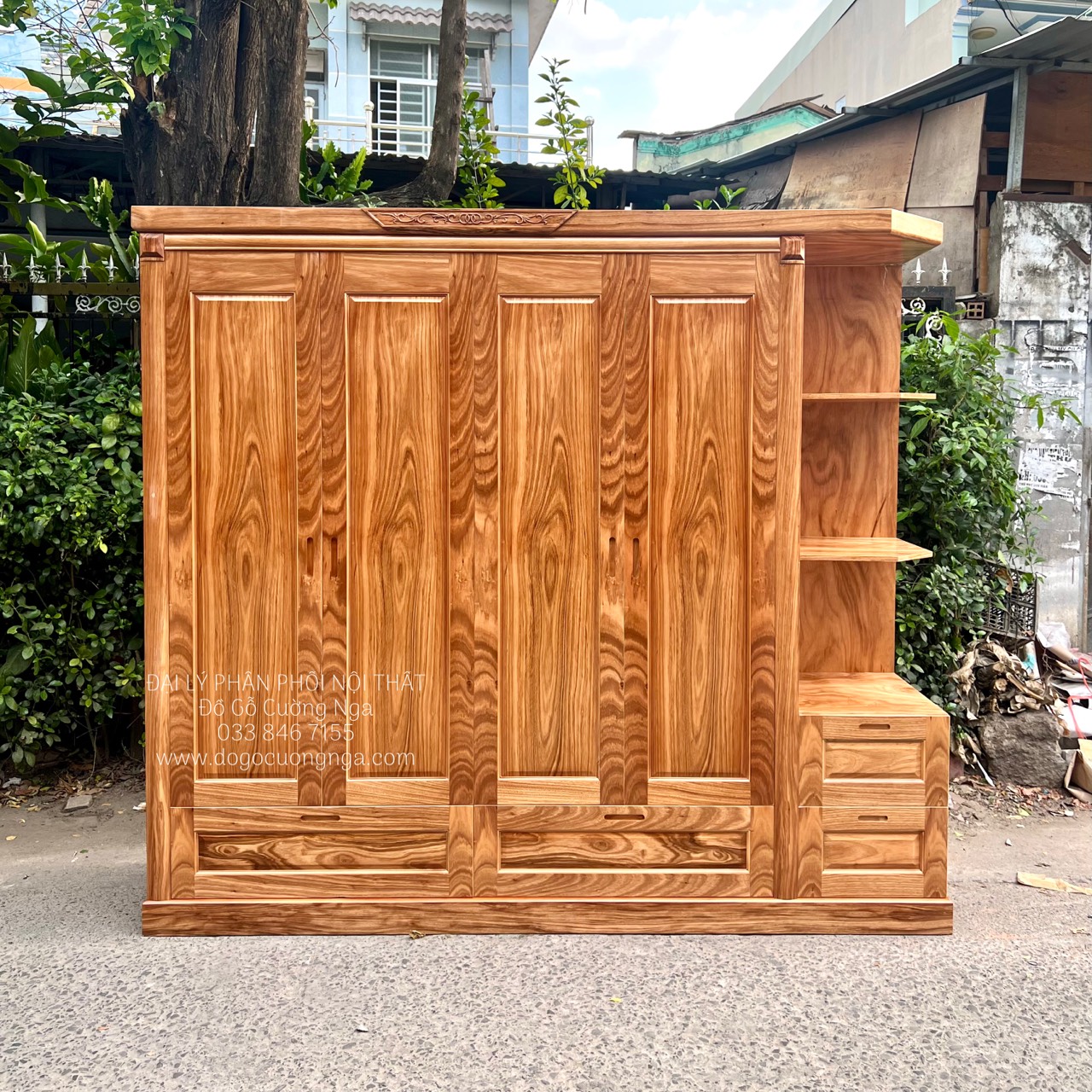 Tủ Áo Gỗ Hương Xám 4 Cánh Góc Trang Trí Bền Đẹp