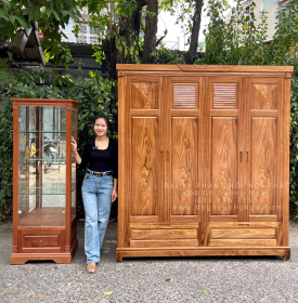 Tủ áo gỗ hương xám - 4 cánh mẫu chóp
