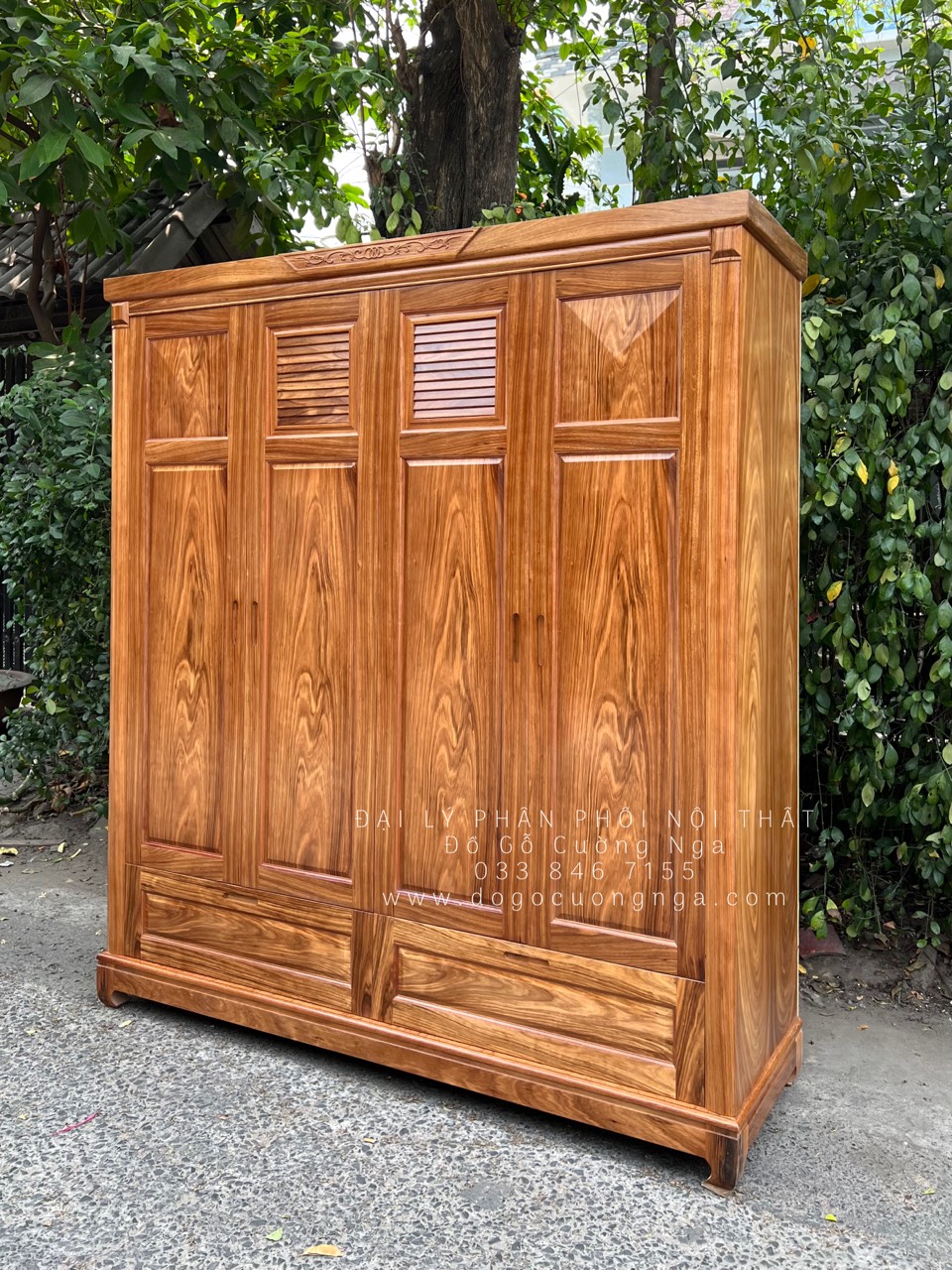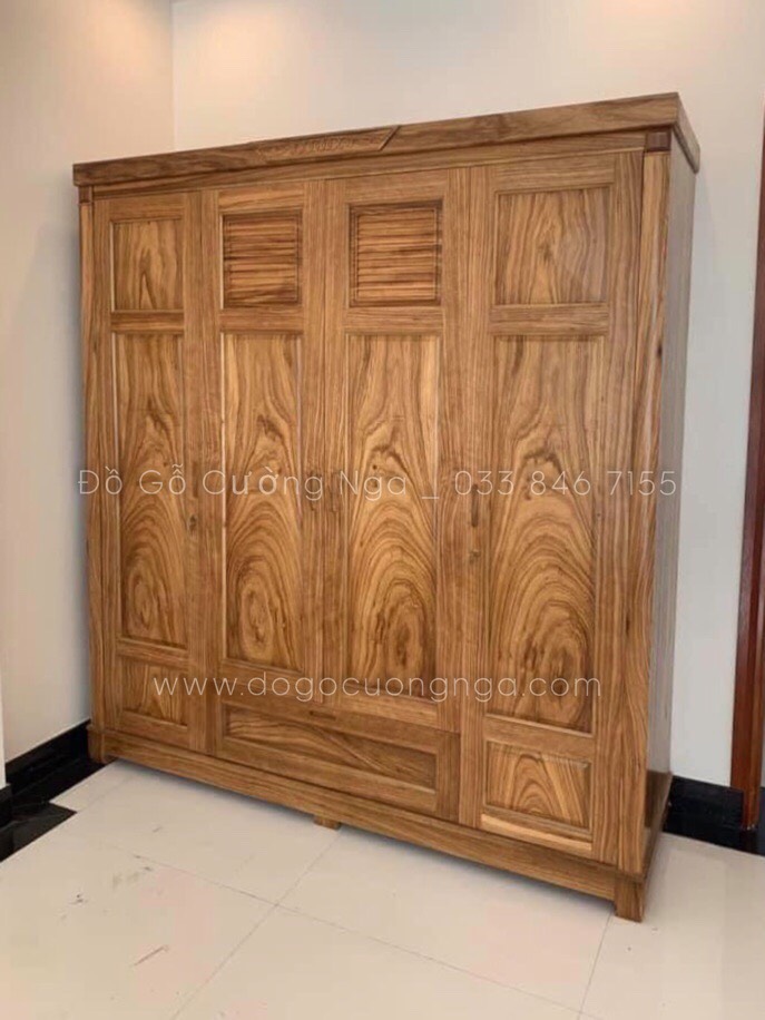 Chi tiết tủ áo gỗ hương xám 4 cánh