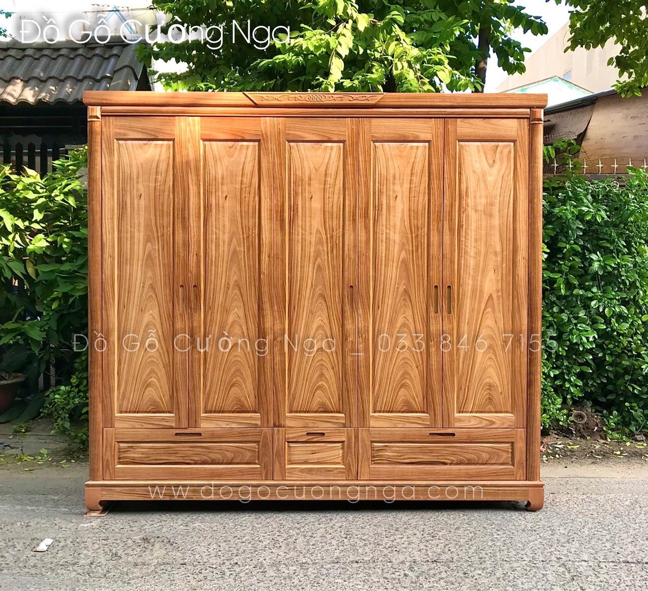 Tủ quần áo gỗ hương xám hiện đại 5 cánh